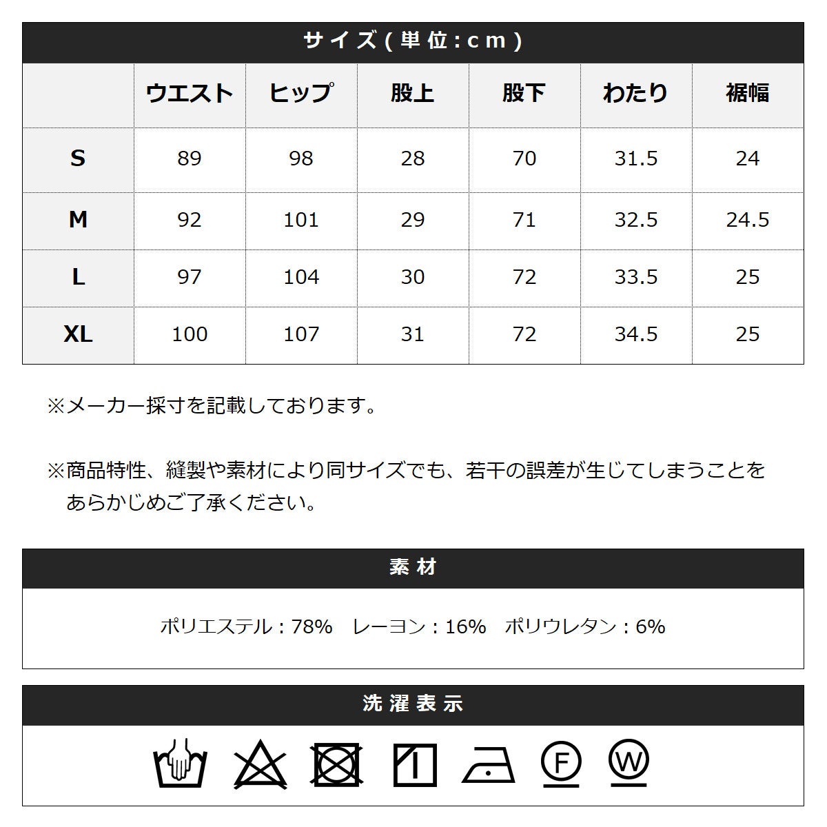 ポリエステル:78% レーヨン:16% ポリウレタン:6%