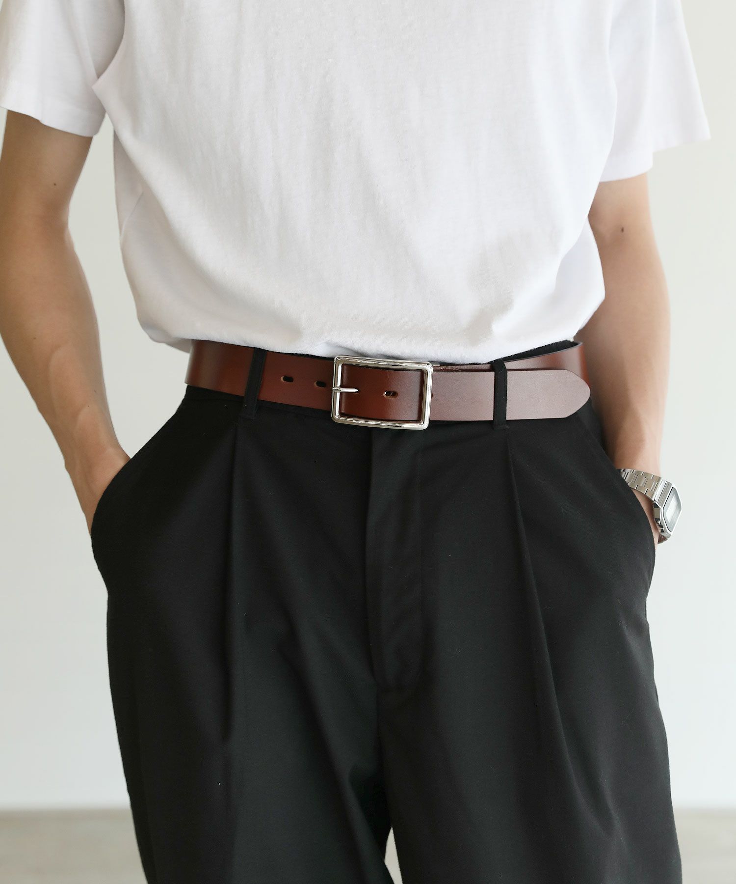 タックインスタイルのときなどの腰回りのアクセントとしても重宝するベルト。意外と見られるアクセサリーのひとつです。キレイめスタイルを提案し続けるSPUならではの視点で本革、国産など上質なもののみをセレクトしてご用意しております。