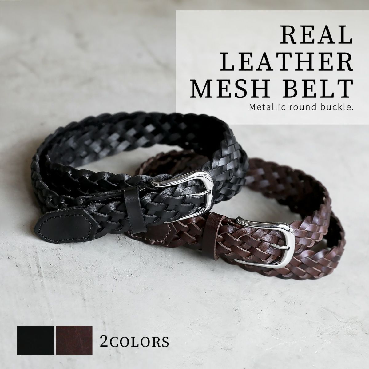 上質な艶で大人のこなれ感を演出するレザーメッシュベルト。