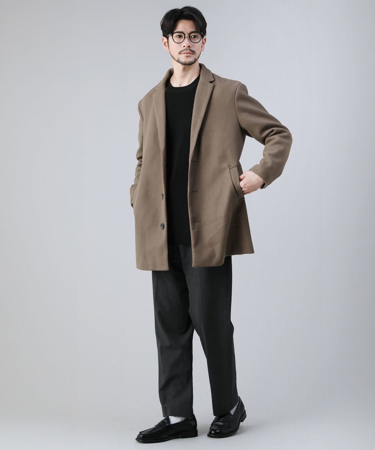 暖かみのあるメルトン素材を使用したチェスターコートです。