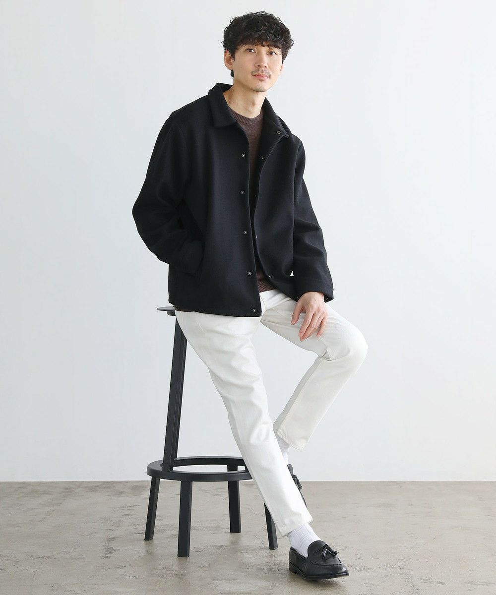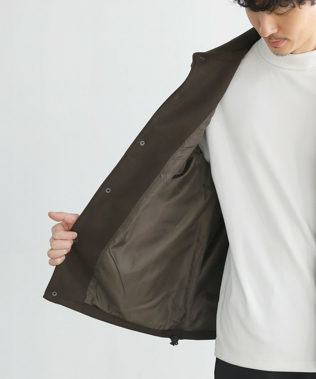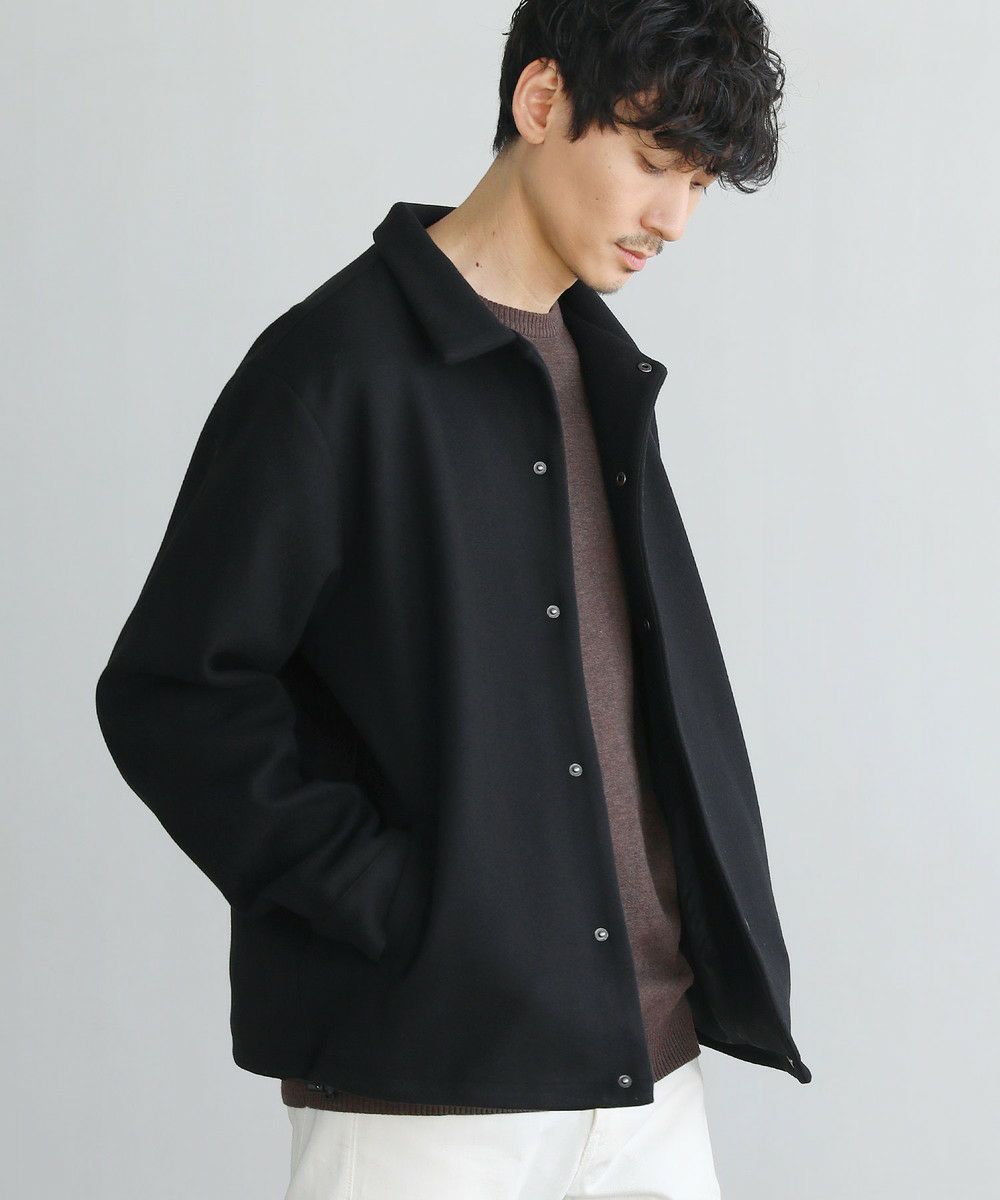 ベーシックデザインでミニマルな装いのメルトンコーチジャケットです。カジュアルな印象の強いコーチジャケットにメルトン生地を使用することで、キレイめ要素をプラス。ややルーズめのサイジングでトレンド感を醸しつつも、すっきりと見せられる上品さも併せ持ったアウターに仕上げました。