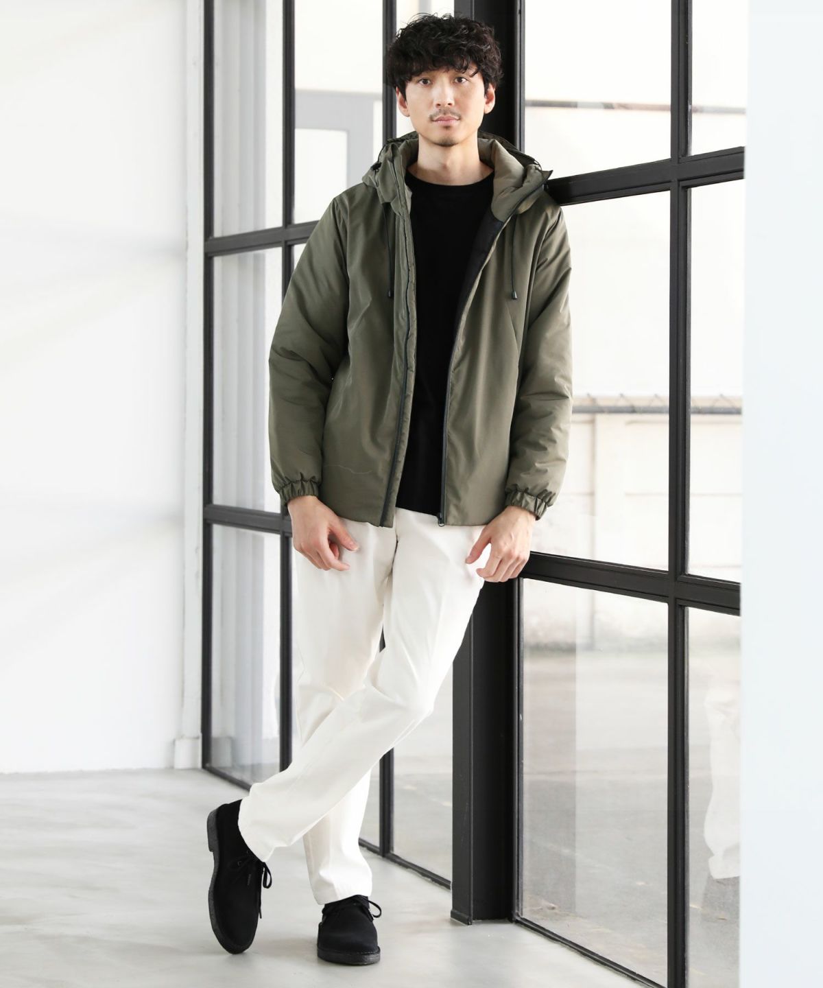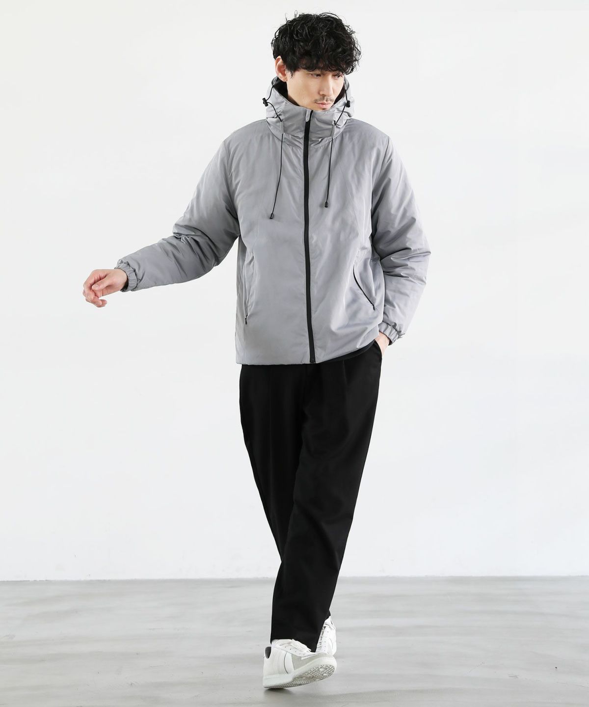 シレ加工ドローコード撥水防風加工付き中綿フードジャケット
