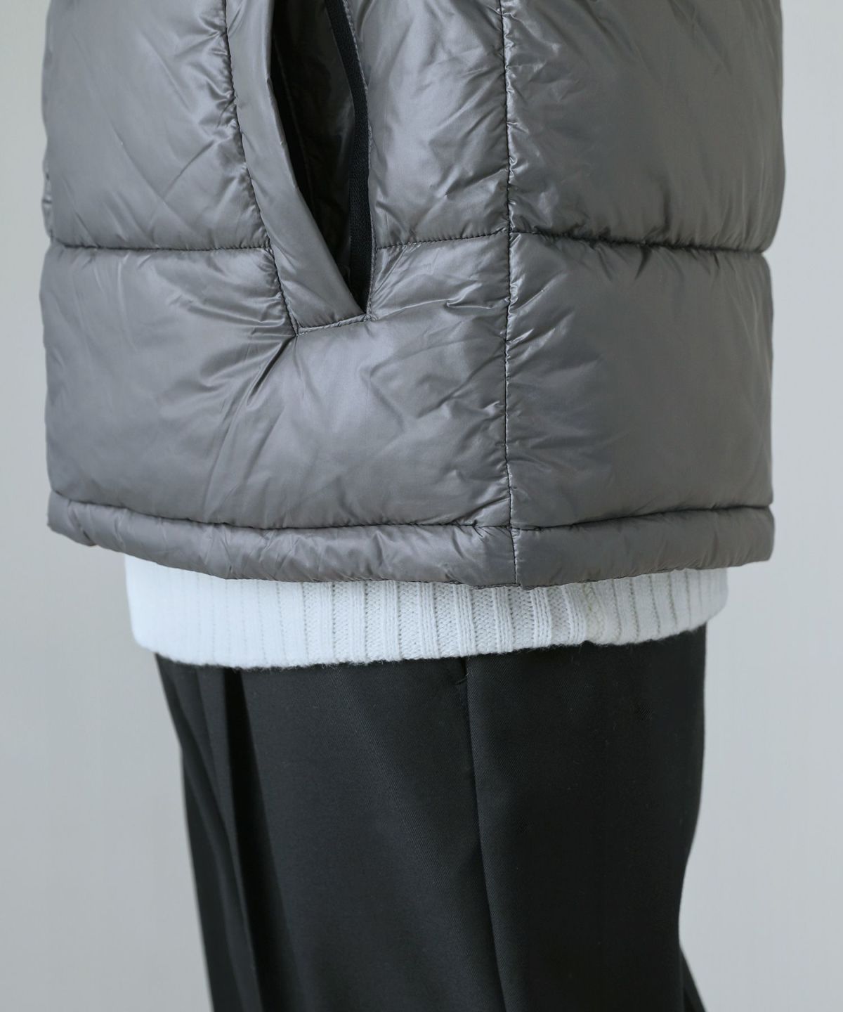 スタンドネック ノーカラーデザイン キルトダウンジャケット