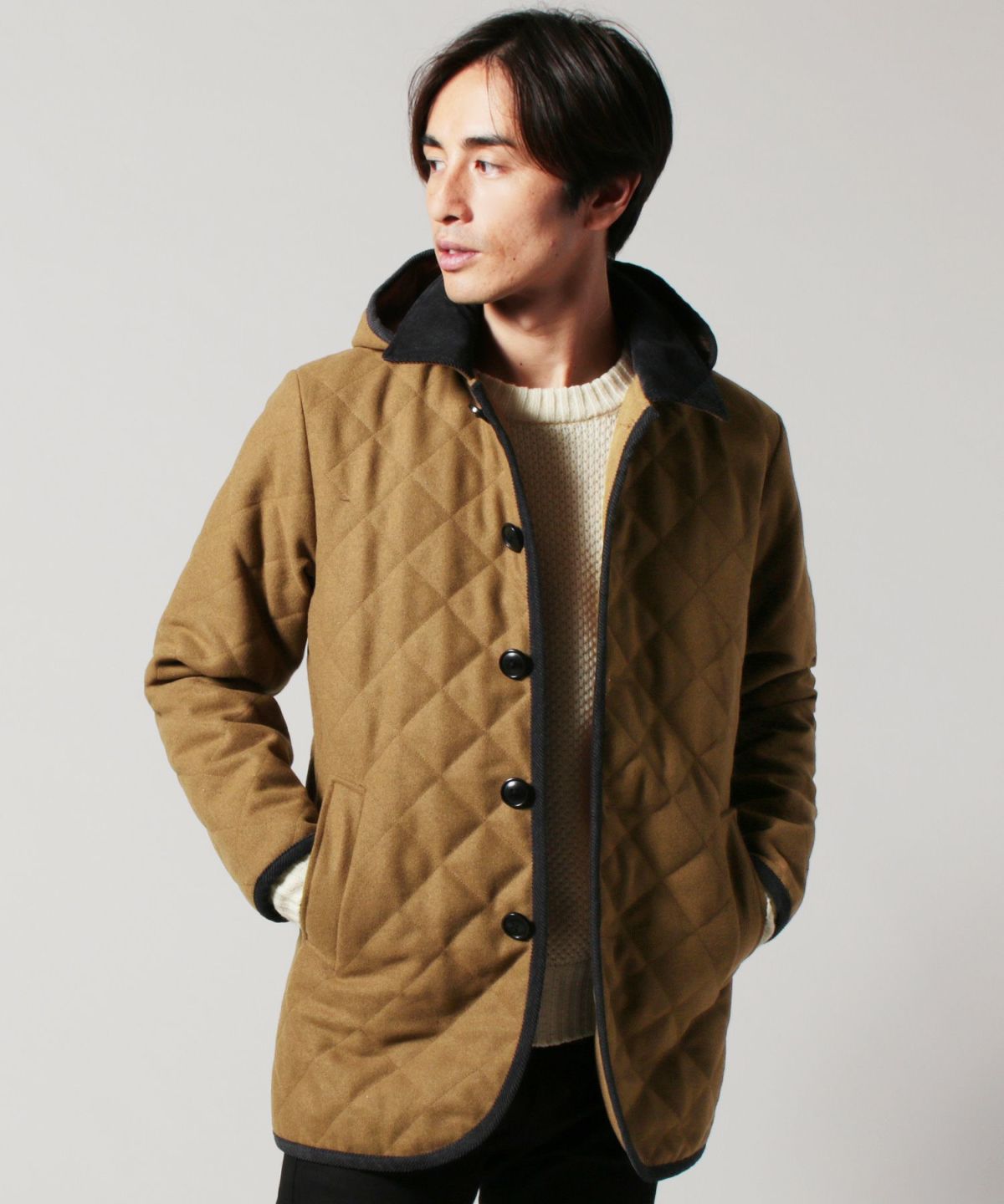 610gウールメルトン脱着フード付きサーモライト中綿キルティングジャケット