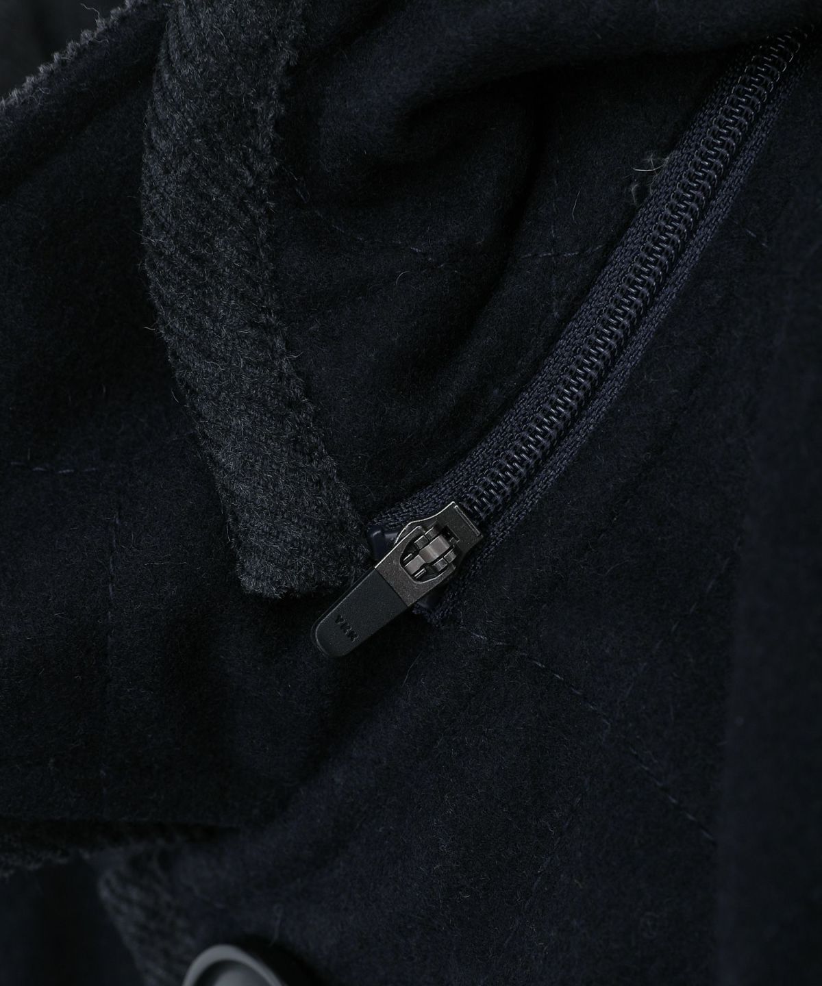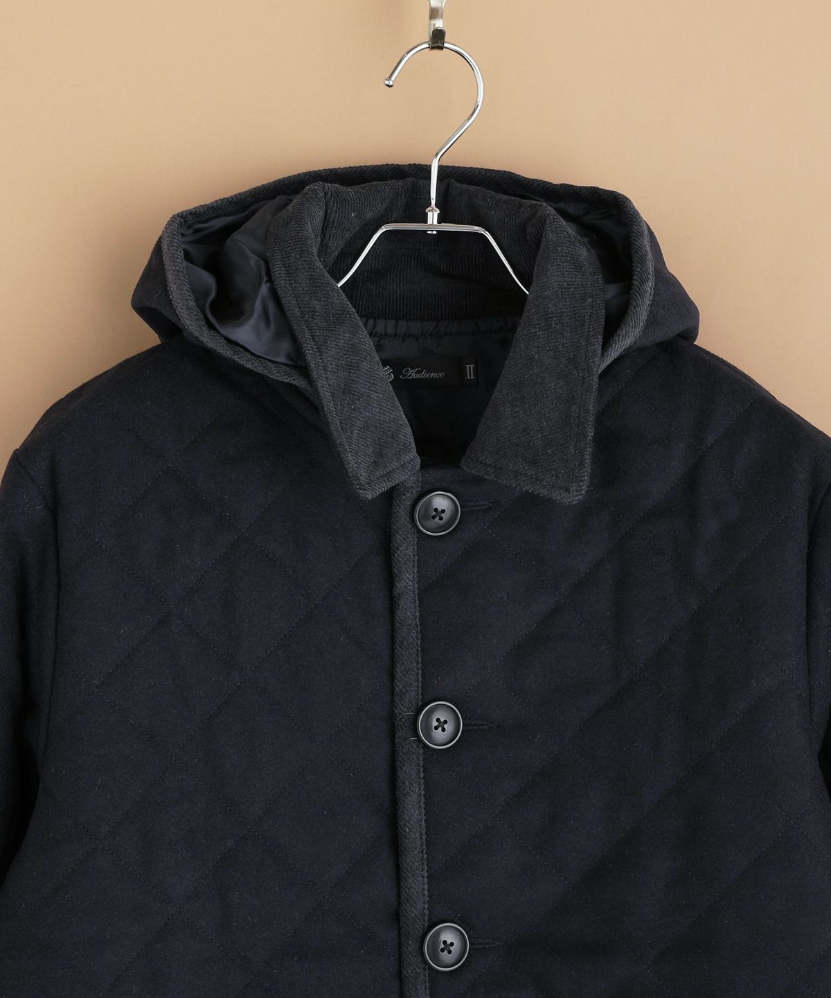 610gウールメルトン脱着フード付きキルティングジャケット