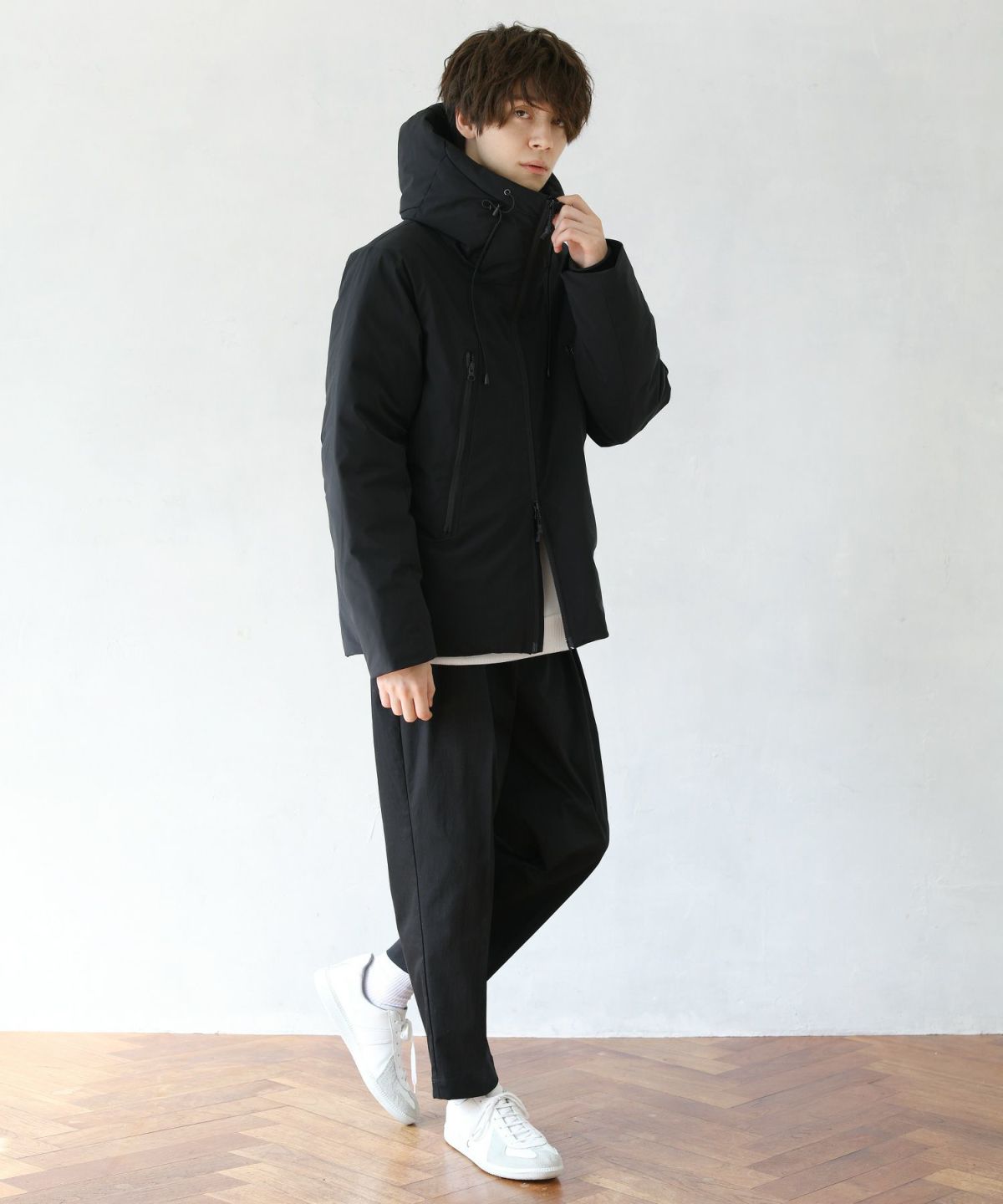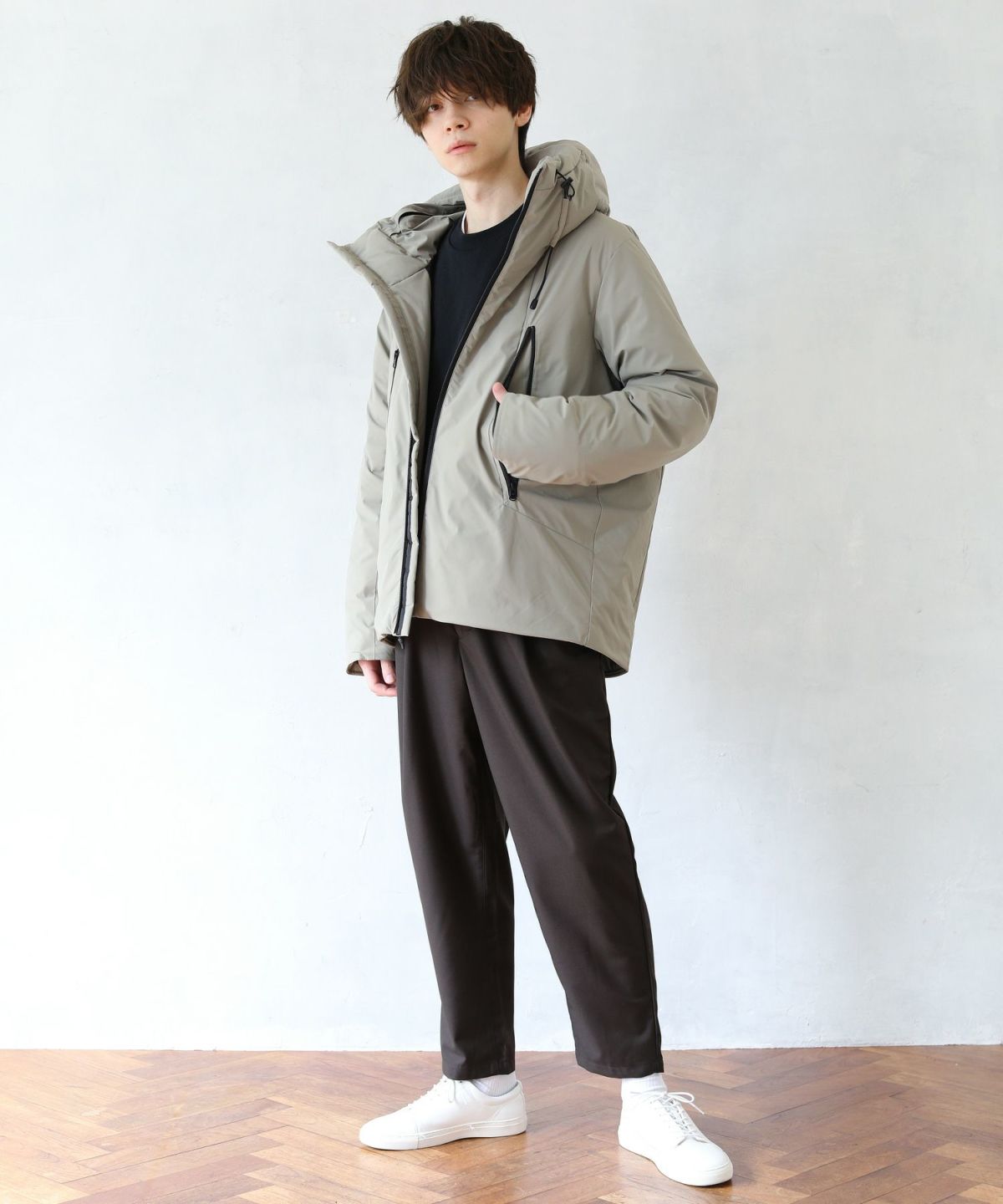 また、表側のキルティングはなくして、すっきりとしたミニマルな印象に。キレイめスタイルにも合わせやすい、高機能なダウンジャケットに仕上げております。