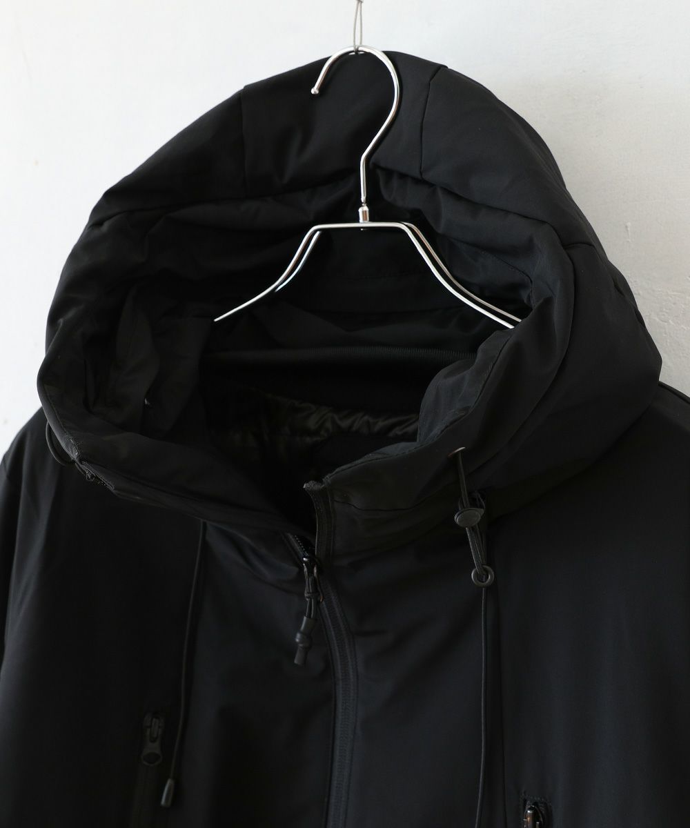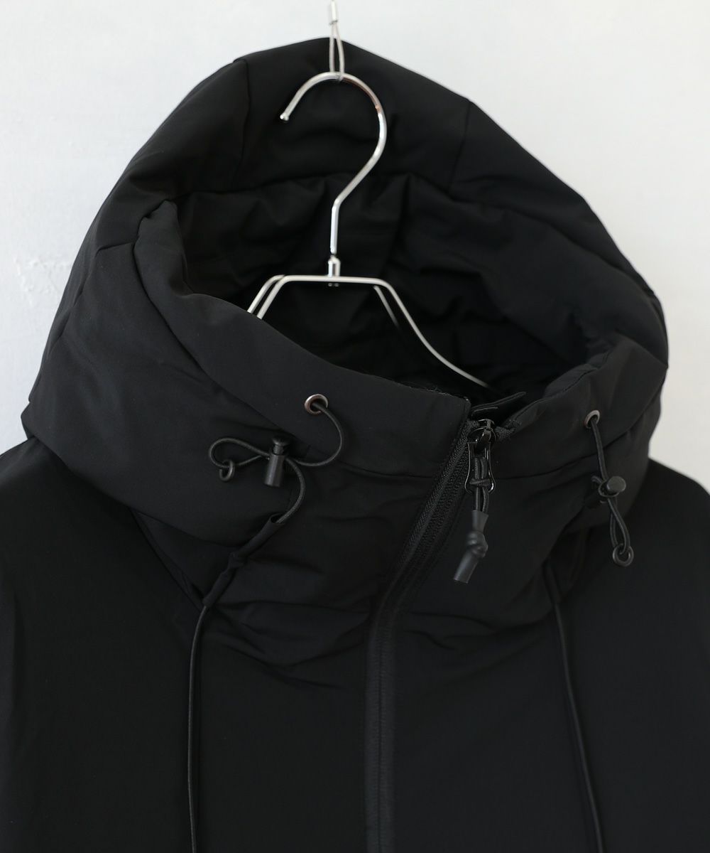 撥水ナイロンストレッチ2レイヤーシェルボリュームハイネックダウンジャケット