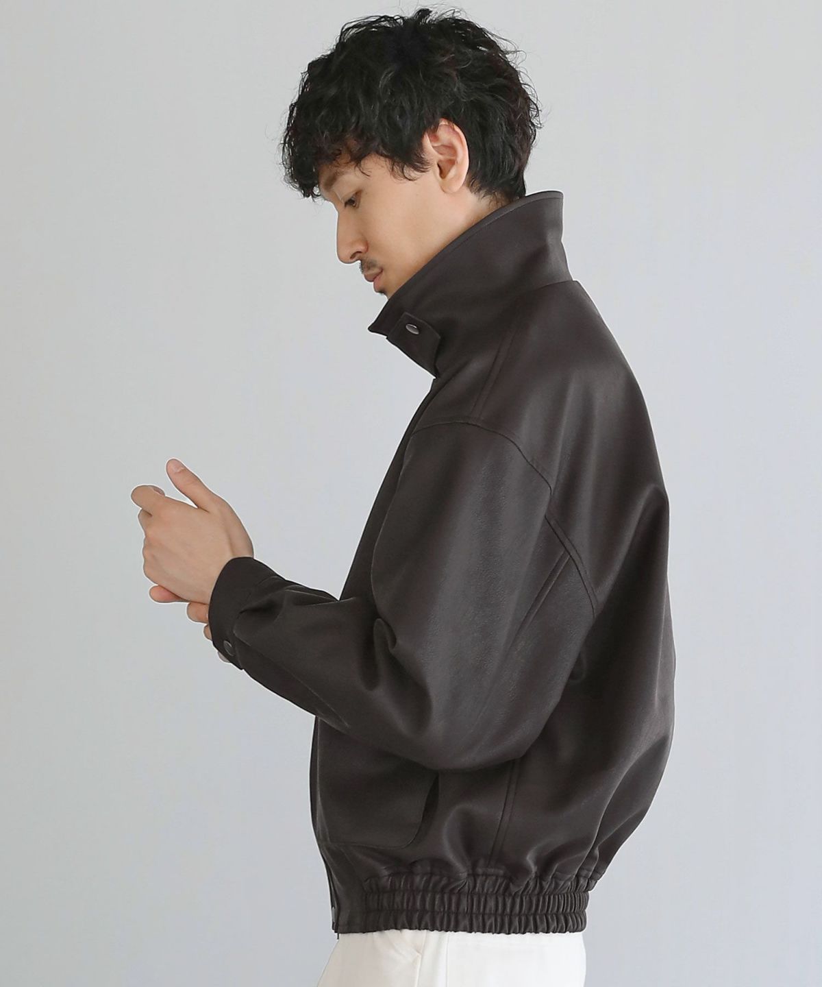 カラーは定番のブラックを始め、ヴィンテージ加工されたブラック系と、落ち着いた印象のブラウンを加えた3色展開。襟元はそのまま着用するのはもちろん、襟下のチンストラップを留めてスタンドカラーにして着用すれば、よりクールで洗練された印象に。2通りの着方で、着こなしの幅をさらに広げてくれます。スラックスを合わせたキレイめな着こなしから、デニムを合わせたカジュアルな着こなしまで、様々なテイストに合うヘビロテ間違いなしのジャケットです。