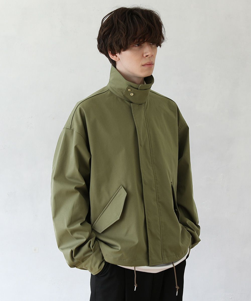 今回は米海軍のユーティリティージャケットをモチーフに、ミリタリーウェアの機能的なディテールを活かしながらタウンユースに落とし込みました。シルエットはトレンドのショート丈のオーバーサイズで、ボリュームのある袖がポイント。メタルのブラインドホックボタンがミニマルな印象を与え、衿を立ててフラップで留めることでスタンドカラーのデザインも楽しめるアイテムです。