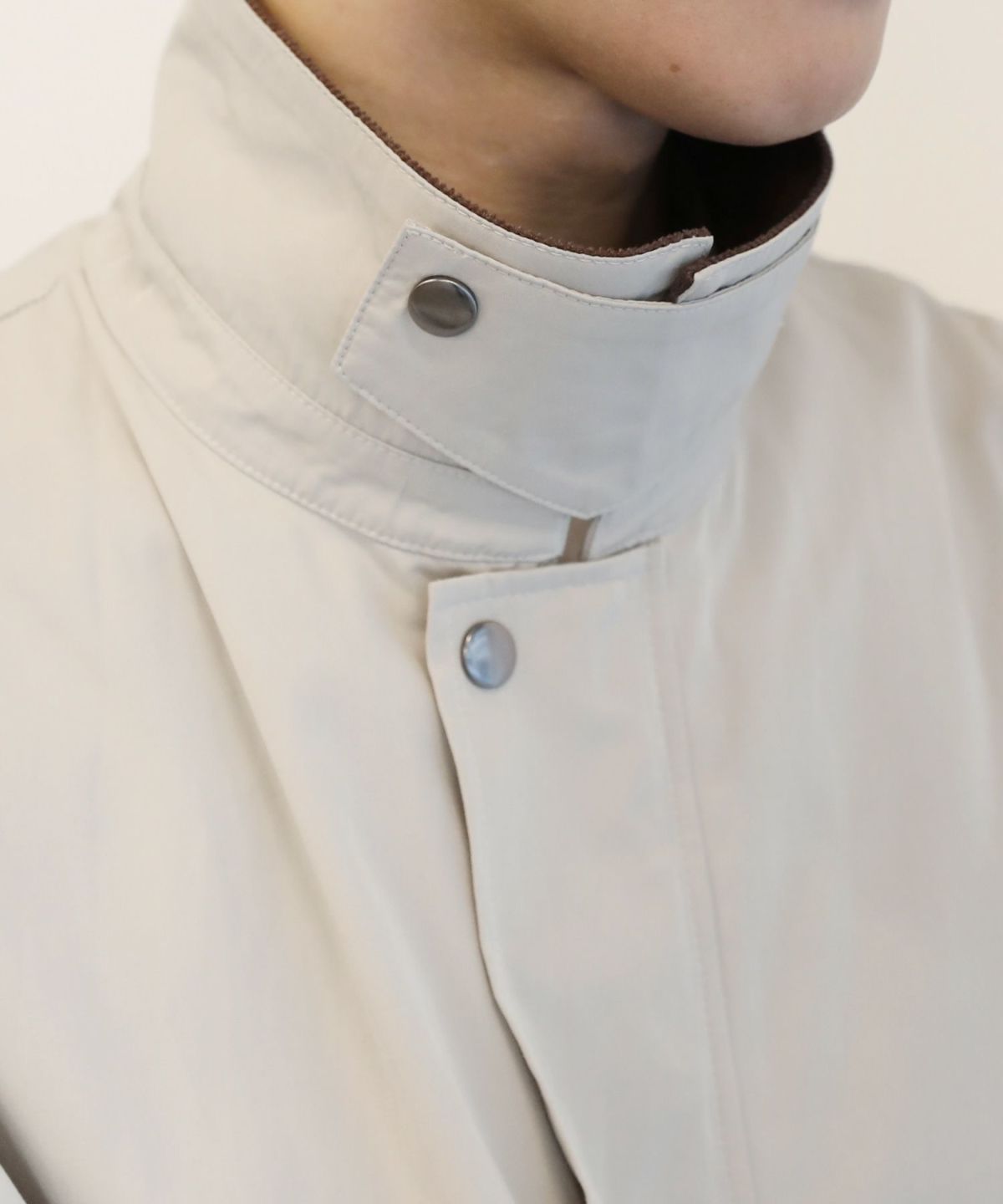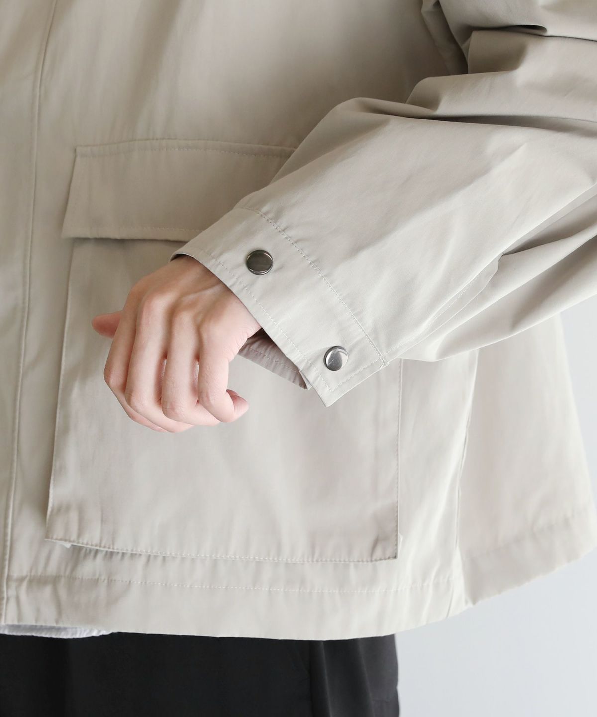 程よくゆとりをもたせたシルエットで、ラフな着こなしが楽しめるサイズ感に仕上げました。大きめのボタン付フラップポケットやジップ&スナップボタンの前立てなど、実用的なディテールが満載です。さらに襟元のチンストラップを閉めてハイネック仕様にもなる2way仕様。コーデに合わせたアレンジを楽しめて、防寒・防風性もアップします。