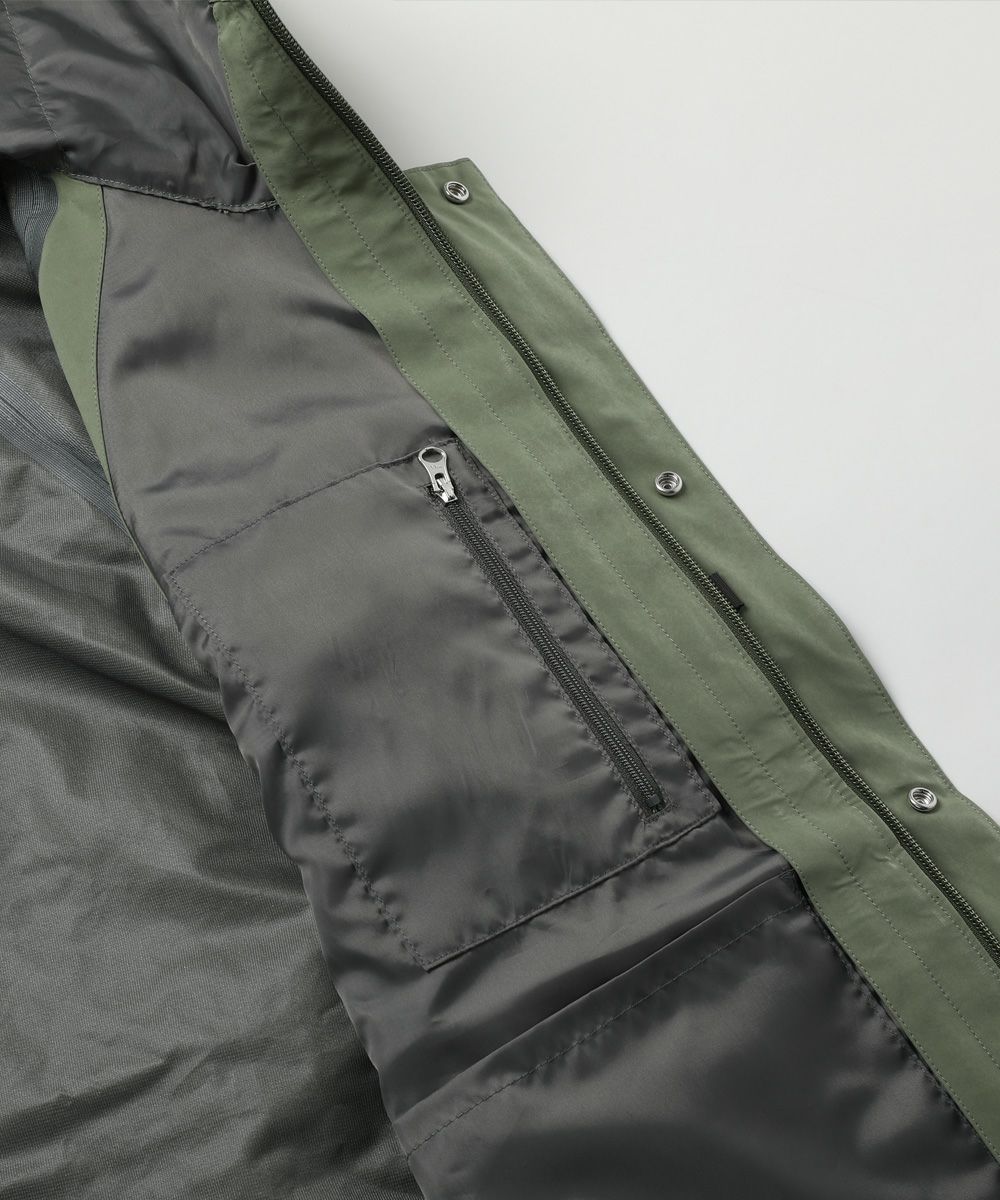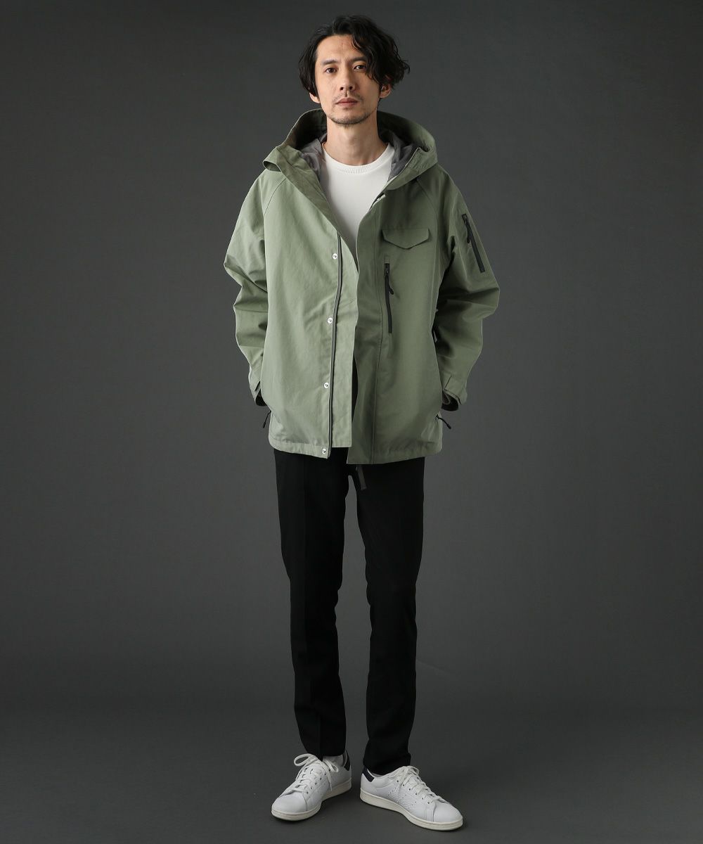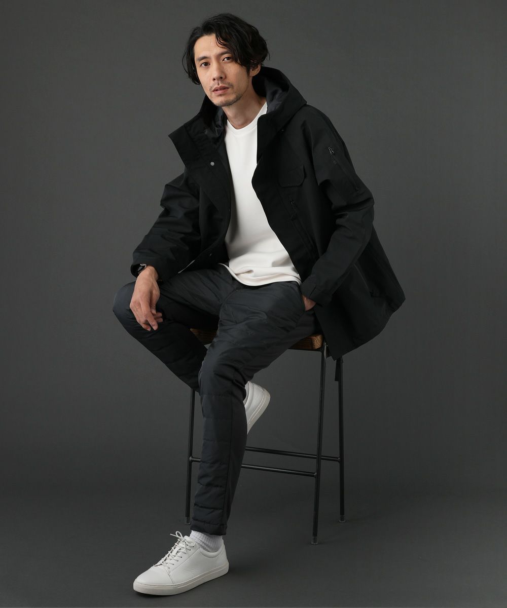止水ファスナーを採用することでより高い防水性を発揮し、雨や雪のシーンでも活躍。ハリのある生地で立体的なシルエットを生み出します。また、同素材を使用したロングタイプの