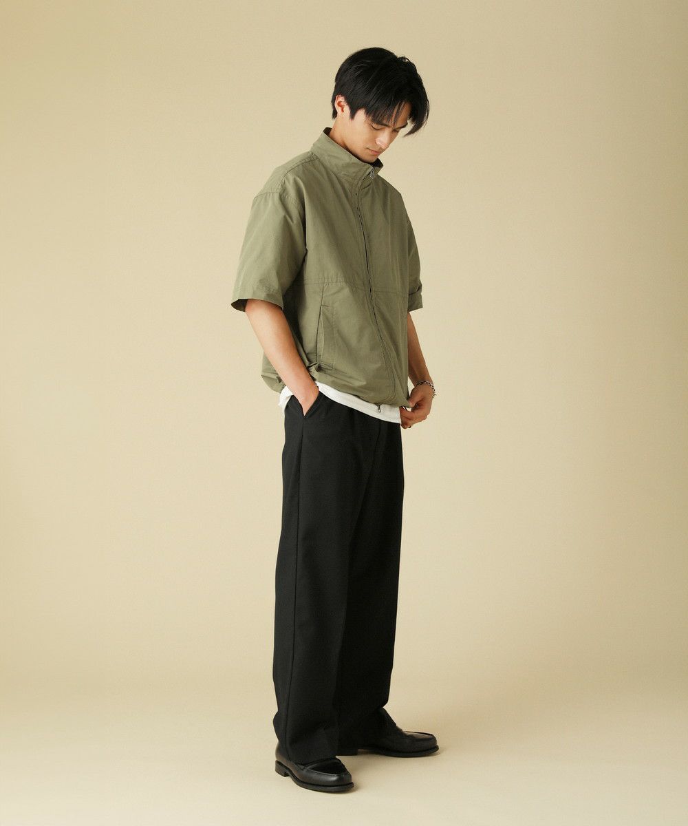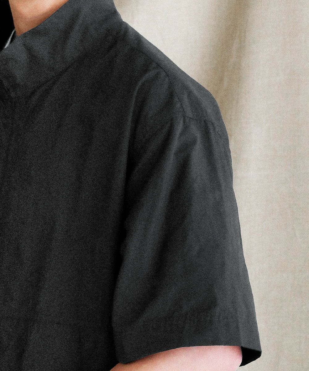 【セットアップ対応】コットンナイロンギャバスタンドネックフルジップ半袖シャツジャケット
