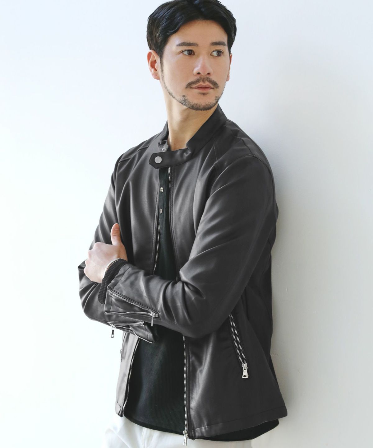 装飾を省いたシンプルなデザインなので、スラックスからデニムパンツまで様々なアイテムと相性良くお召いただけます。カットソーやシャツ、ニットなどの上から羽織るだけでスタイリッシュで大人なコーデが手軽に完成する万能アイテムです。柔らかく肌に馴染みやすい生地なので、アクティブに着こなせる点もポイント。革とは違い、雨や汚れに強く入念なお手入れの必要がないので、デイリー使いがしやすく着こなしの幅を広げてくれるアイテムです。
