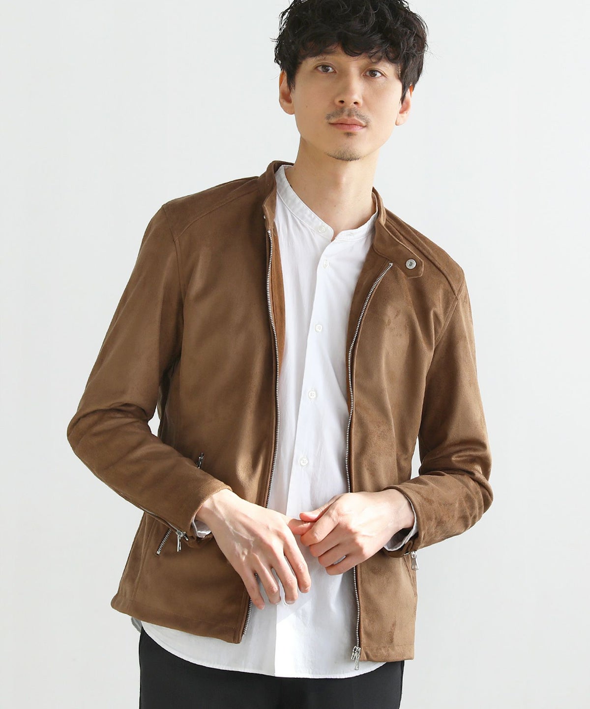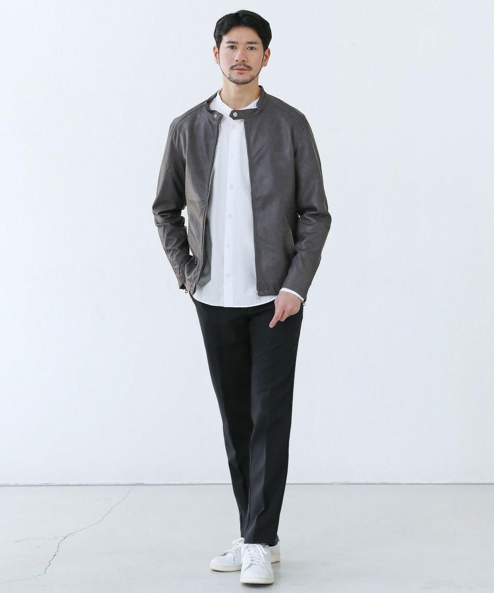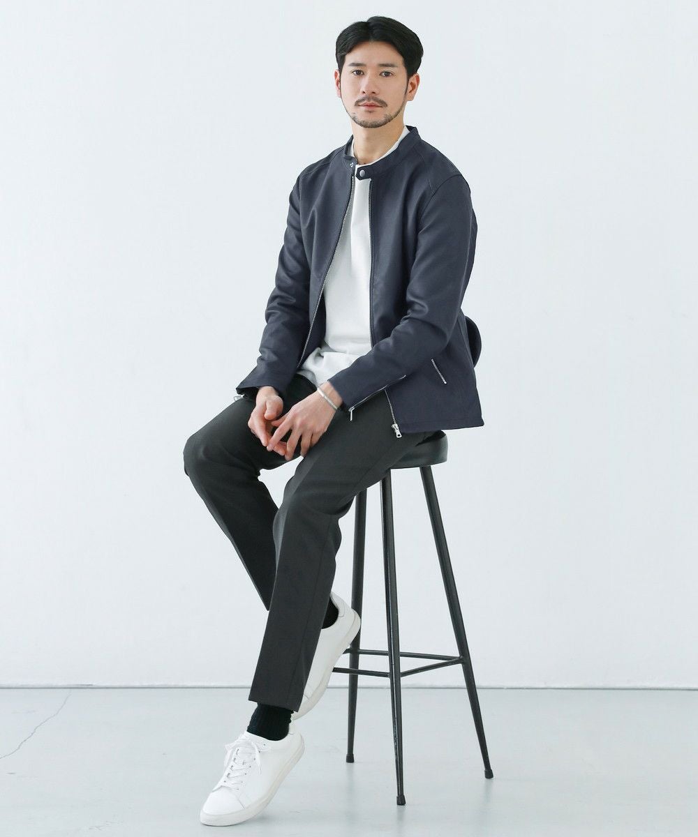 装飾を省いたシンプルなデザインなので、スラックスからデニムパンツまで様々なアイテムと相性良くお召いただけます。カットソーやシャツ、ニットなどの上から羽織るだけでスタイリッシュで大人なコーデが手軽に完成する万能アイテムです。柔らかく肌に馴染みやすい生地なので、アクティブに着こなせる点もポイント。革とは違い、雨や汚れに強く入念なお手入れの必要がないので、デイリー使いがしやすく着こなしの幅を広げてくれるアイテムです。