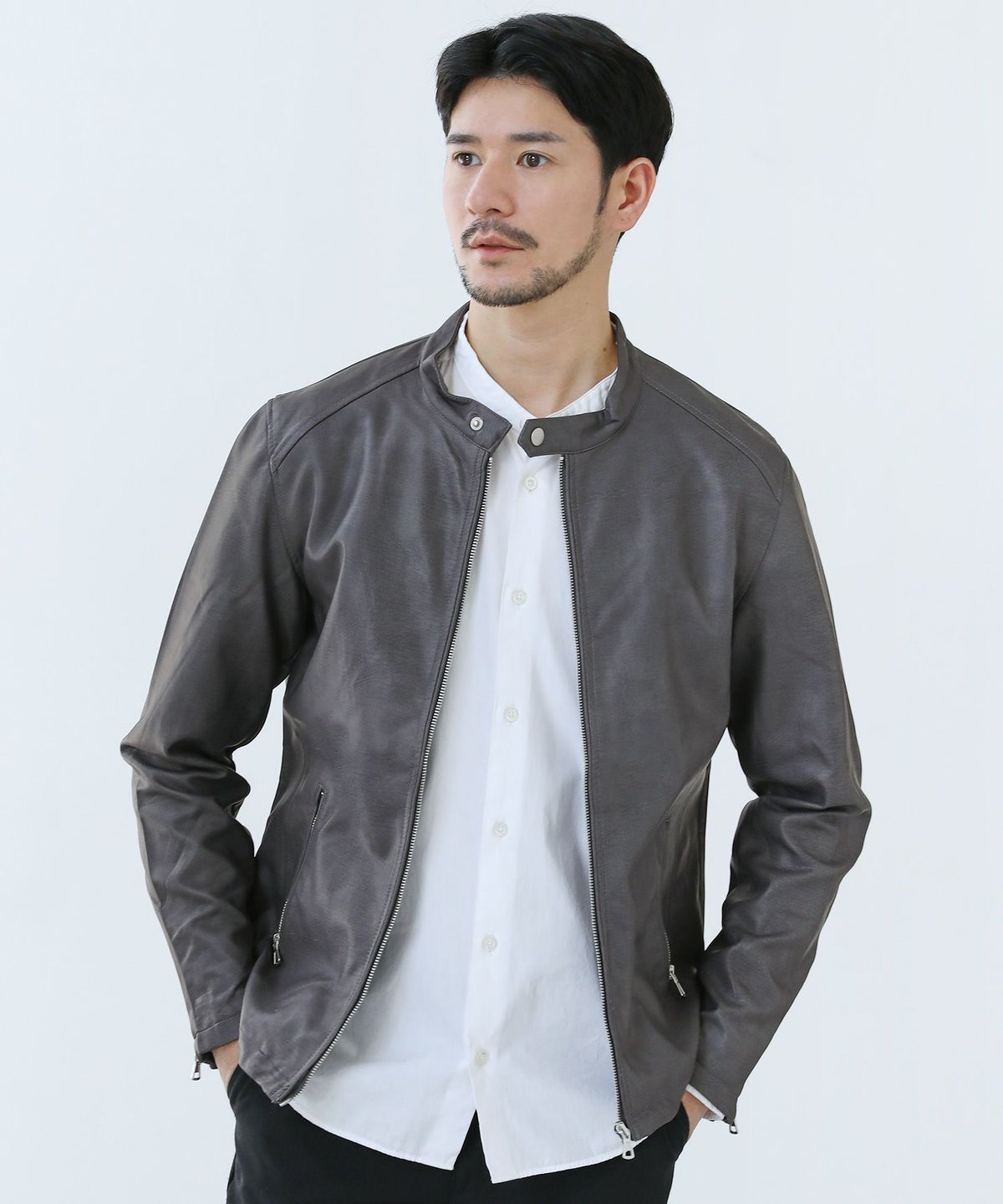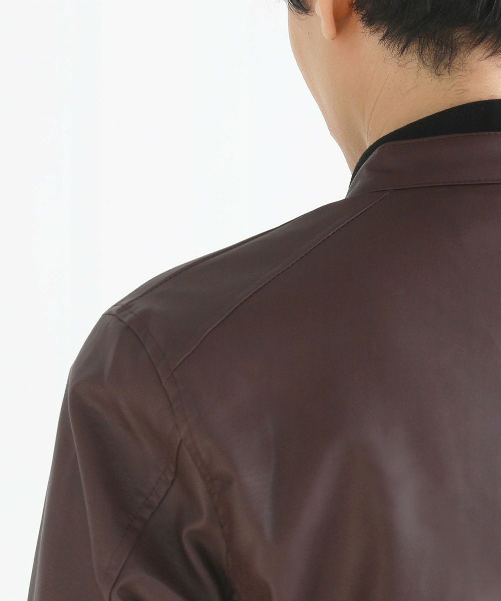 生地には、しっかりと厚みを感じられながらも、しなやかで柔らかさのある質の高いPUレザーを使用。まるでリアルレザーのような滑らかなタッチのスムースPUレザーは、こなれ感を演出しつつもギラつき過ぎず、落ち着いた雰囲気をつくります。シンプルな着こなしでまとめてもどことなく高級感が漂う、大人の男を演出できる魅力たっぷりの一着です。