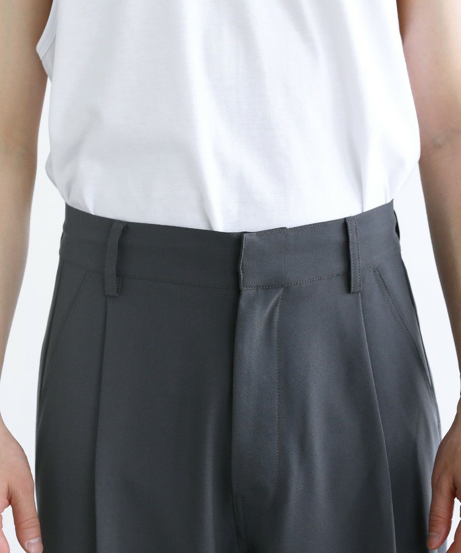 【セットアップ 3点セット】防シワ接触冷感リラックスワイドシャツ+天竺タンクトップ+タックワイドパンツ