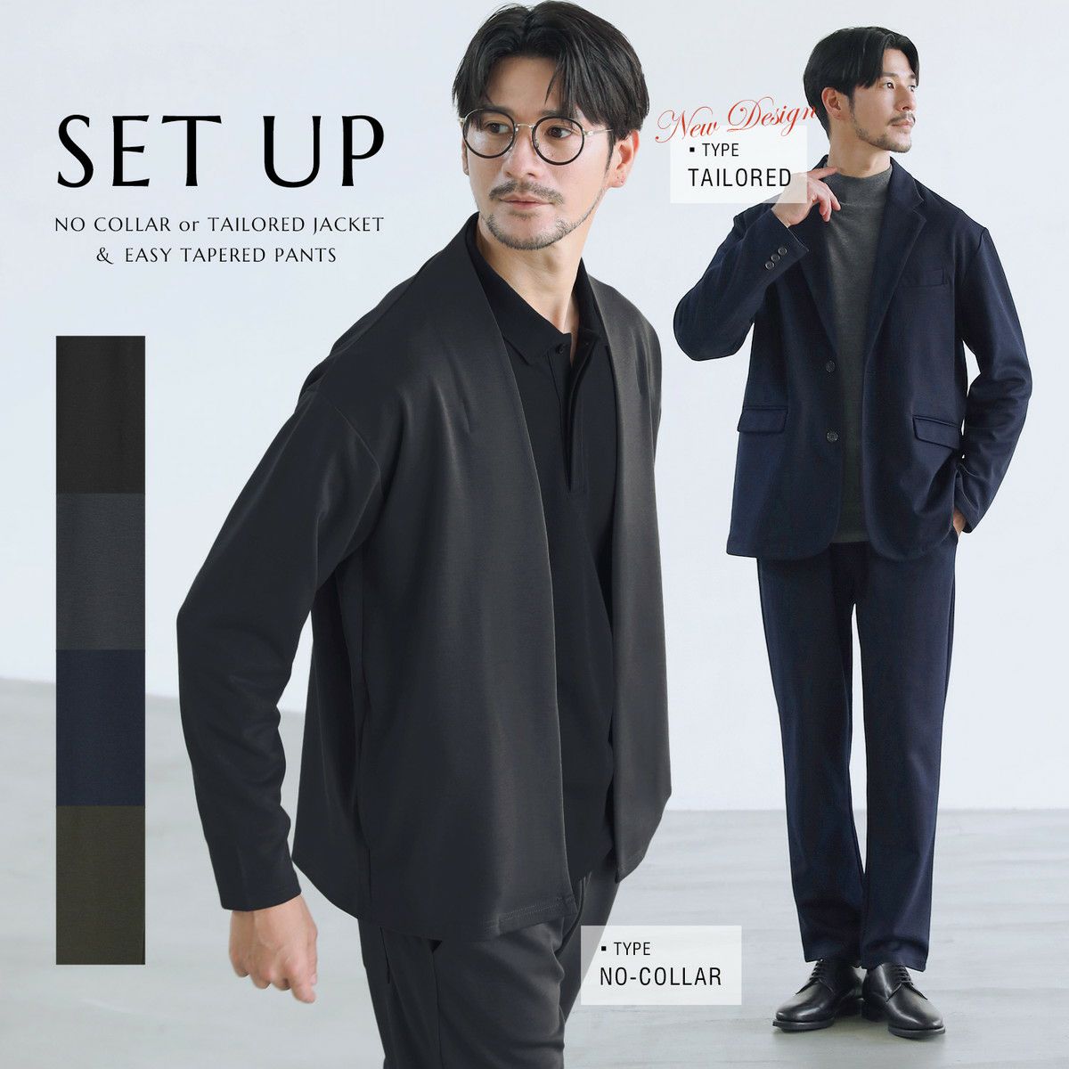 【セットアップ 2点セット】ダブルジャージーノーカラーorテーラードジャケット &イージーテーパードパンツ セットアップ