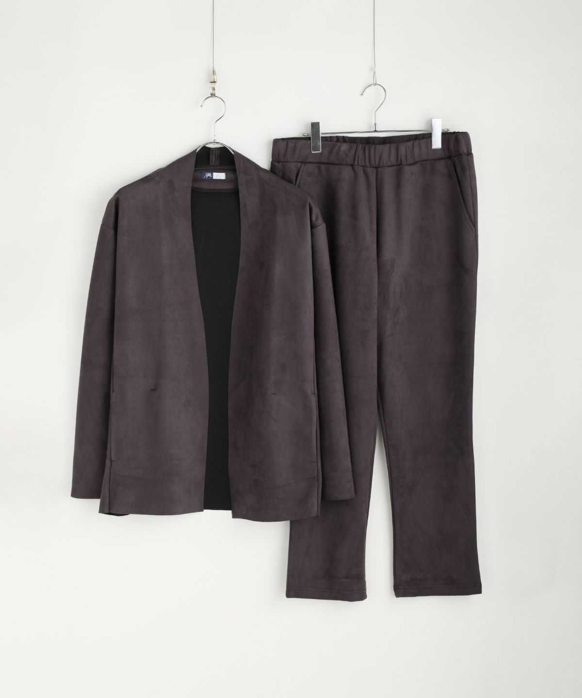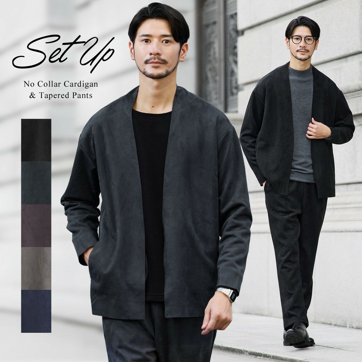 ピーチスキンポンチ ノーカラーカーディガン&テーパードパンツセットアップ