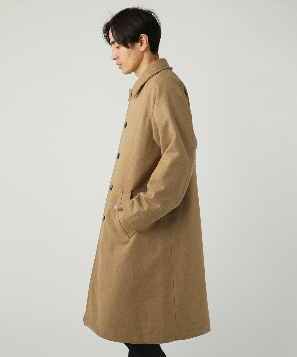 クラシカルな雰囲気のステンカラーコートです。ゆったりとした身頃と、斜めに切替え線が入ったラグランスリーブによるオーバーサイズデザインを採用。重ね着をしても動作にストレスを感じず、リラックスしたシルエットで快適な着心地です。