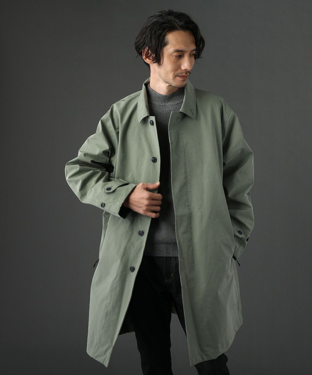 ディテールを削ぎ落したシンプルかつミニマルなデザインのステンカラーコート。