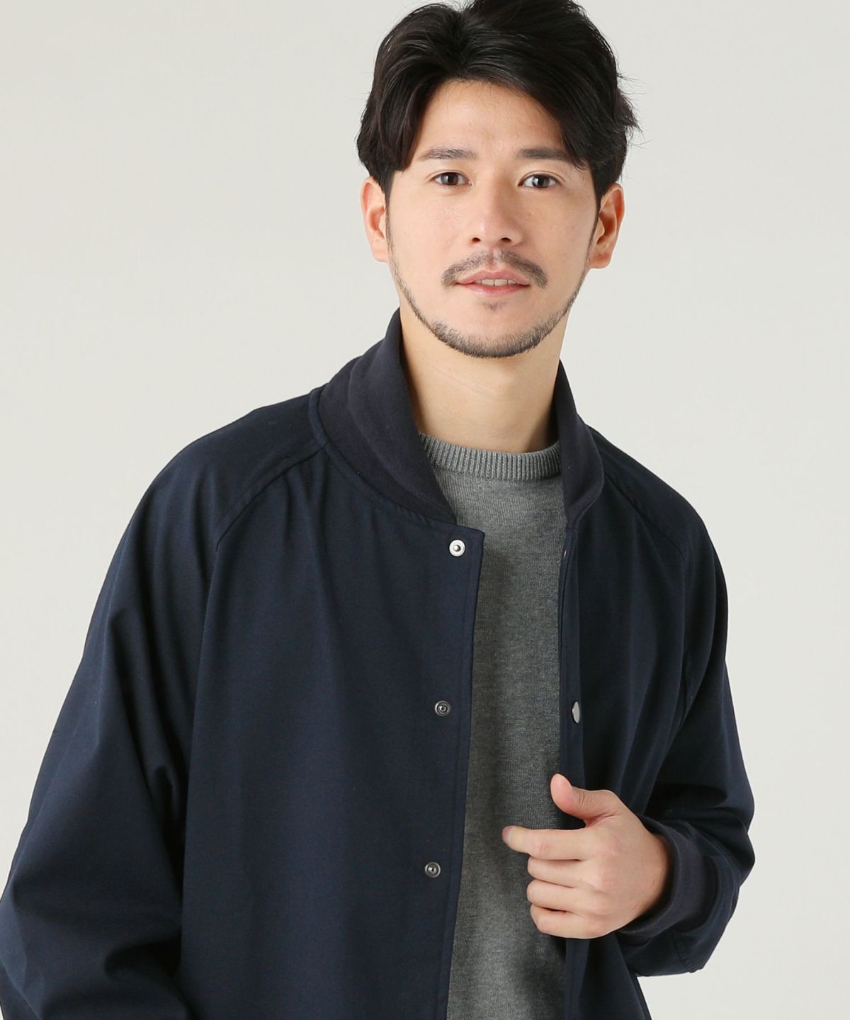 スポーティーなデザインですが、ポリエステルとレーヨンを混紡した上品な印象のギャバジン生地を用いたことで、キレイめなコーディネートにもよく馴染むスタジャンとなっております。
