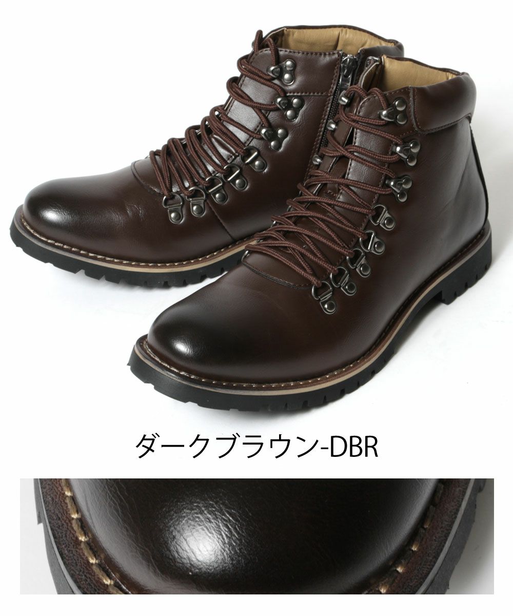 PUレザーサイドジップシティフォルムマウンテンブーツ