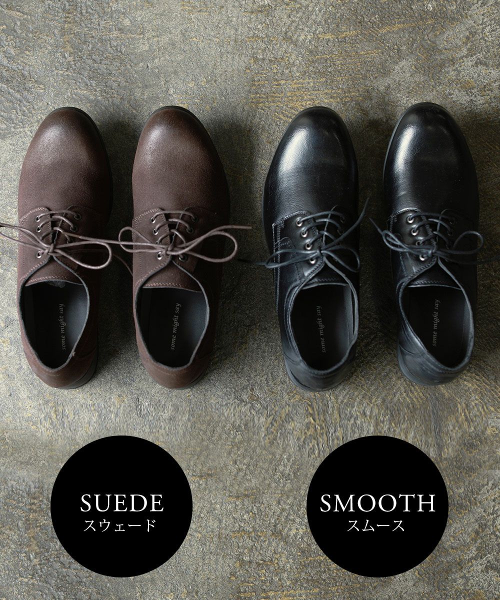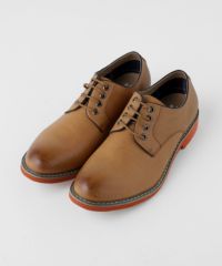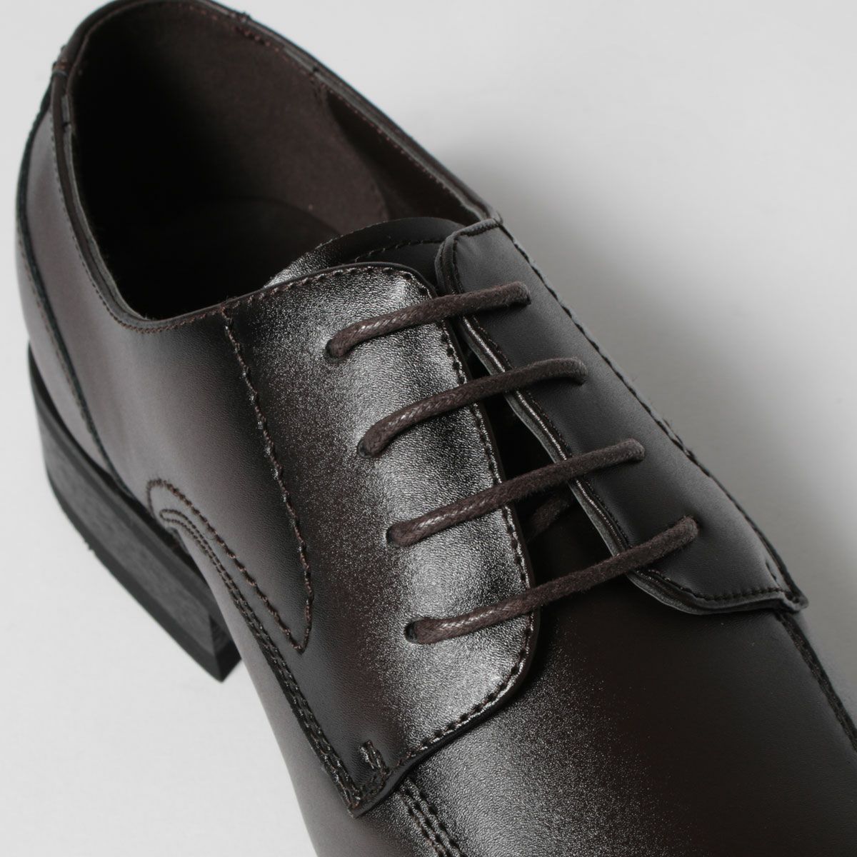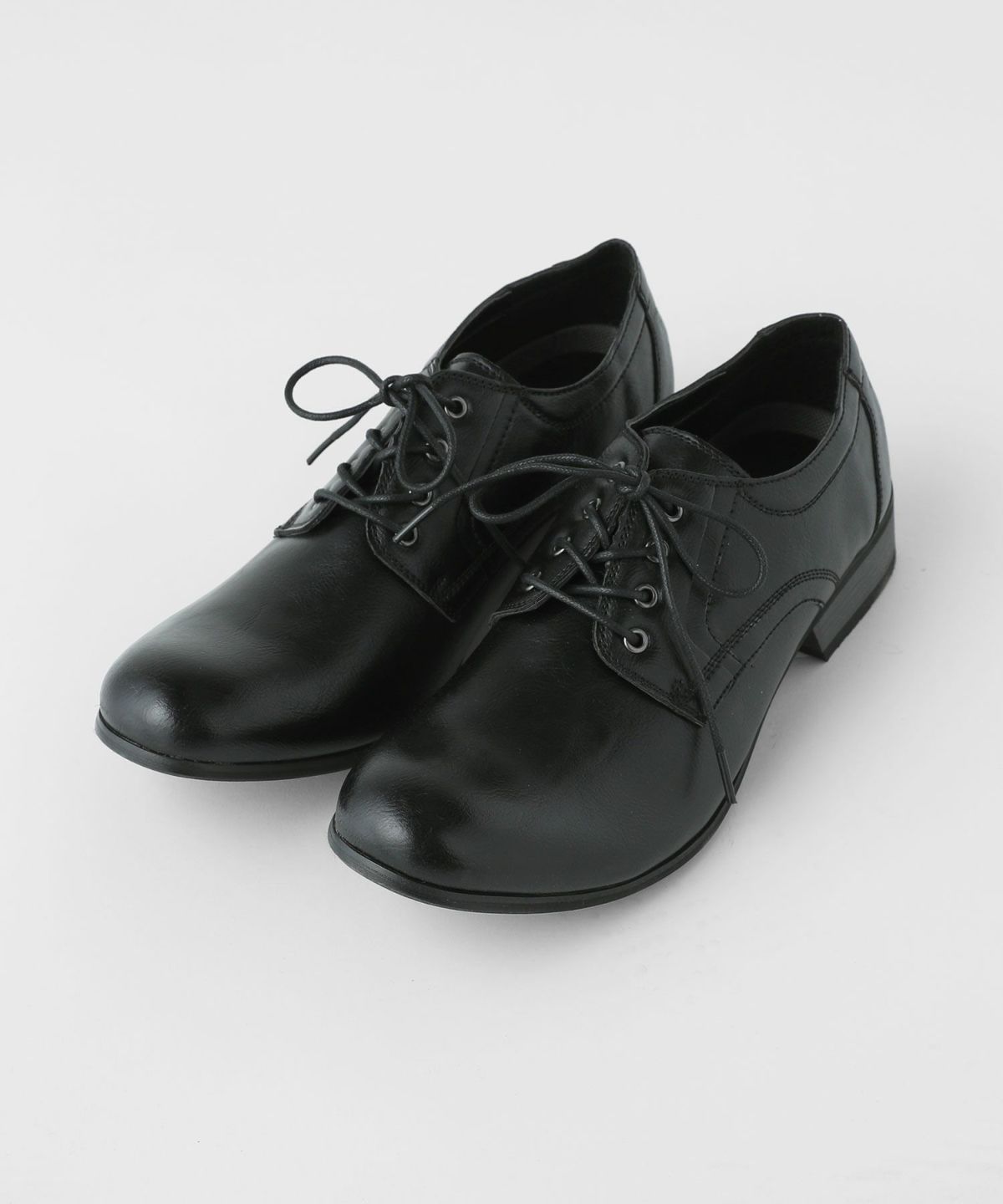 PUレザーレンガソールレースアッププレーントゥシューズ