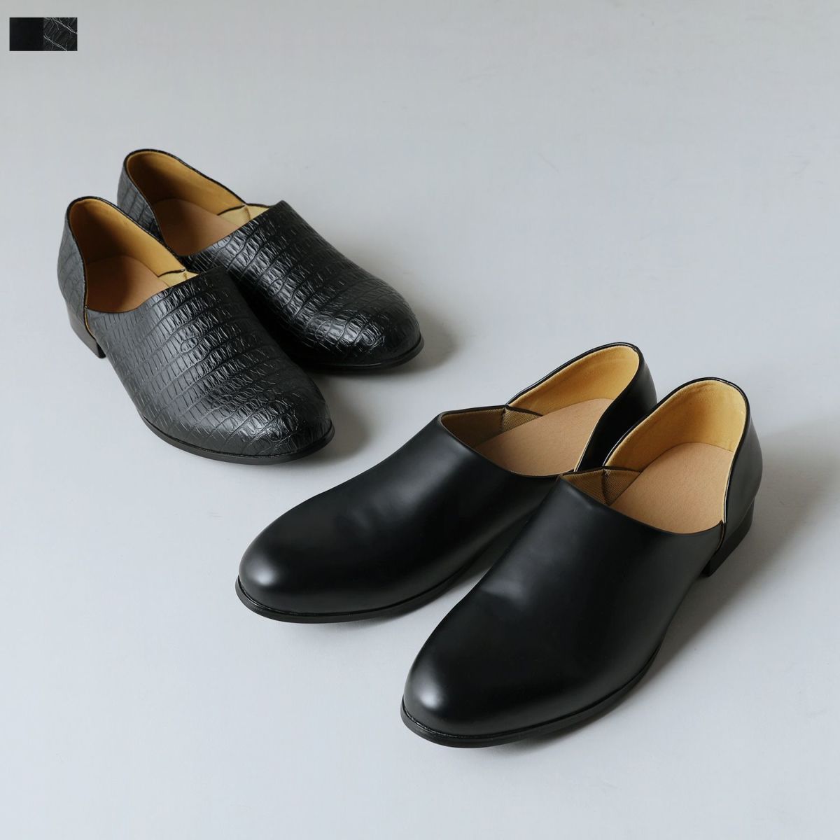 PUレザースウェードバブーシュシューズ
