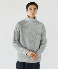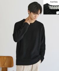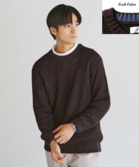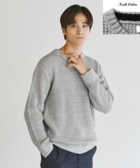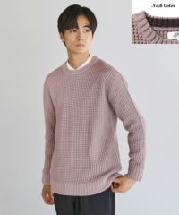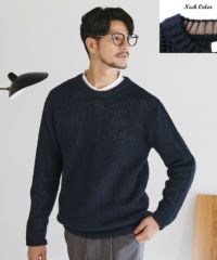 ストレッチウォッシャブルブロックリンクス編み長袖クルーネックニット