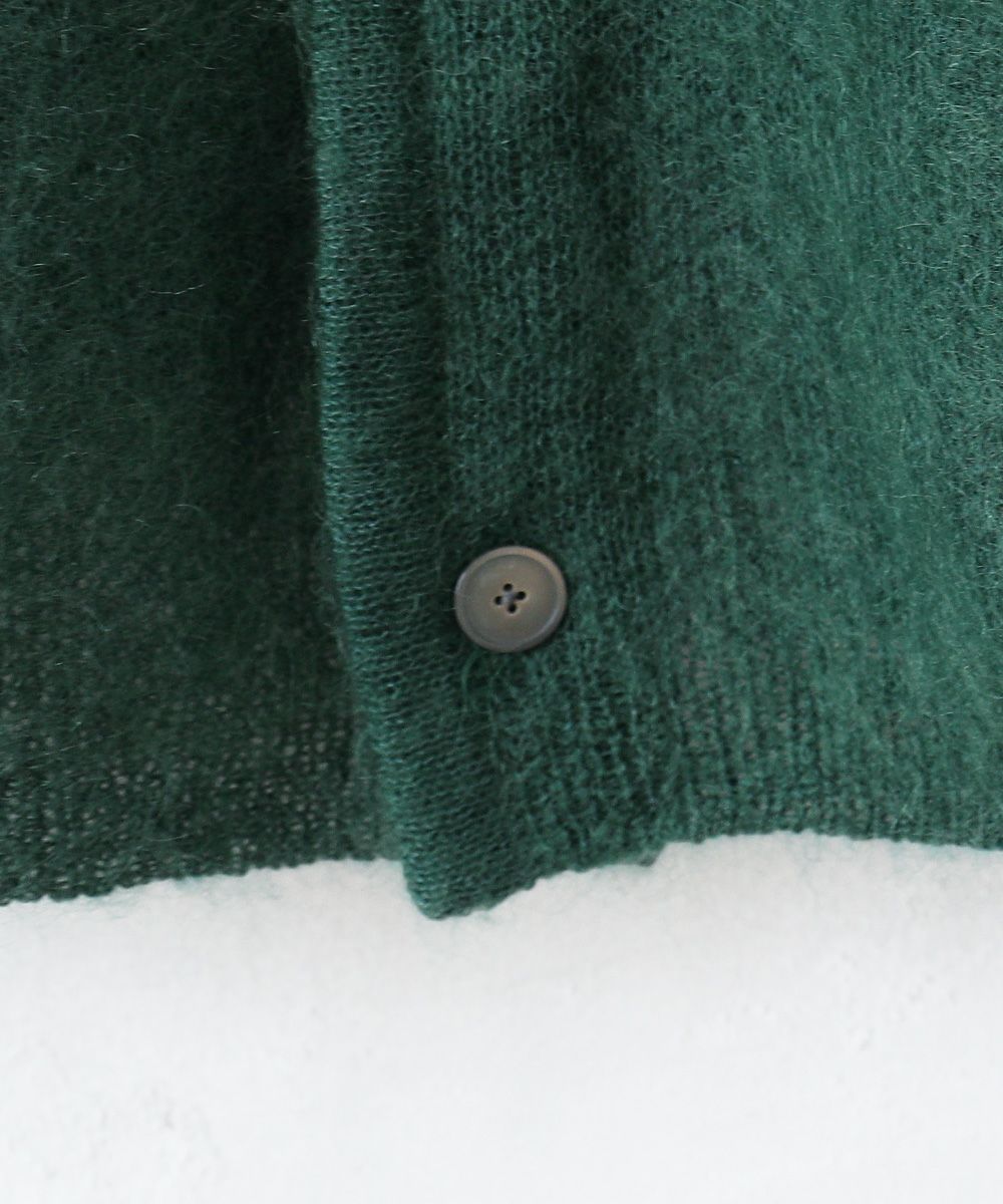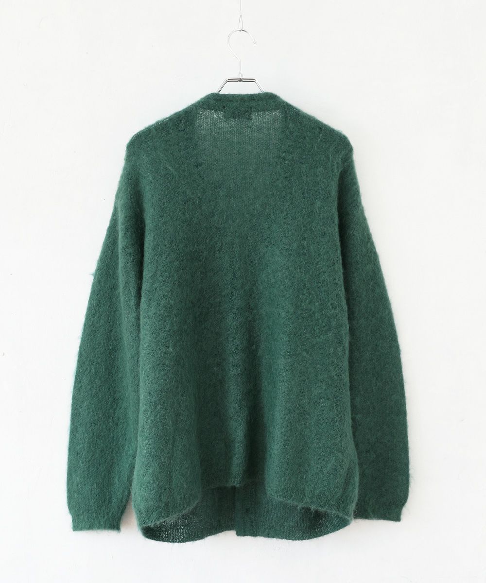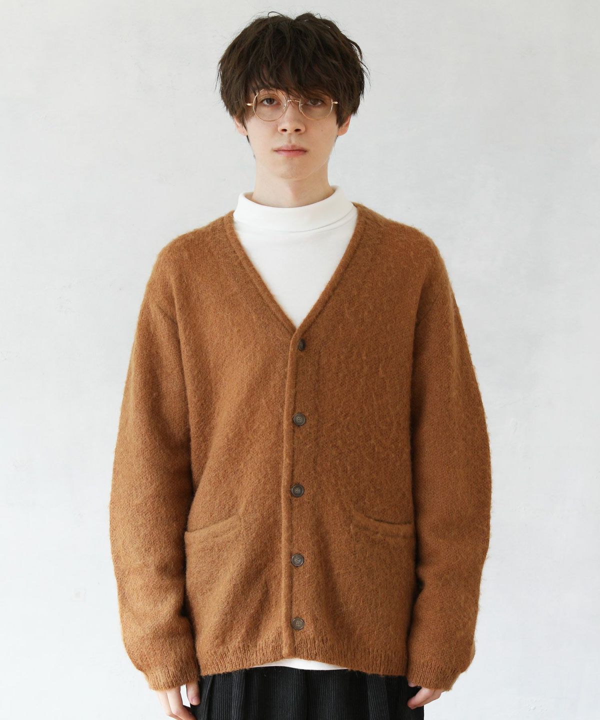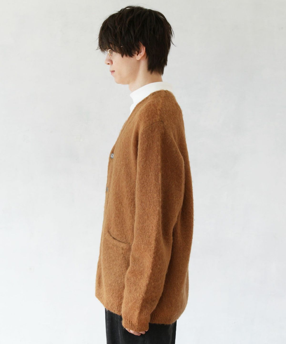 上質で柔らかなモヘアをシャギー起毛したカーディガンです。ゆとりのあるサイジングと、ふっくらとしたシルエットが特徴的。プレーンで日常のスタイリングにも取り入れやすく、着回し力の高いアイテムです。