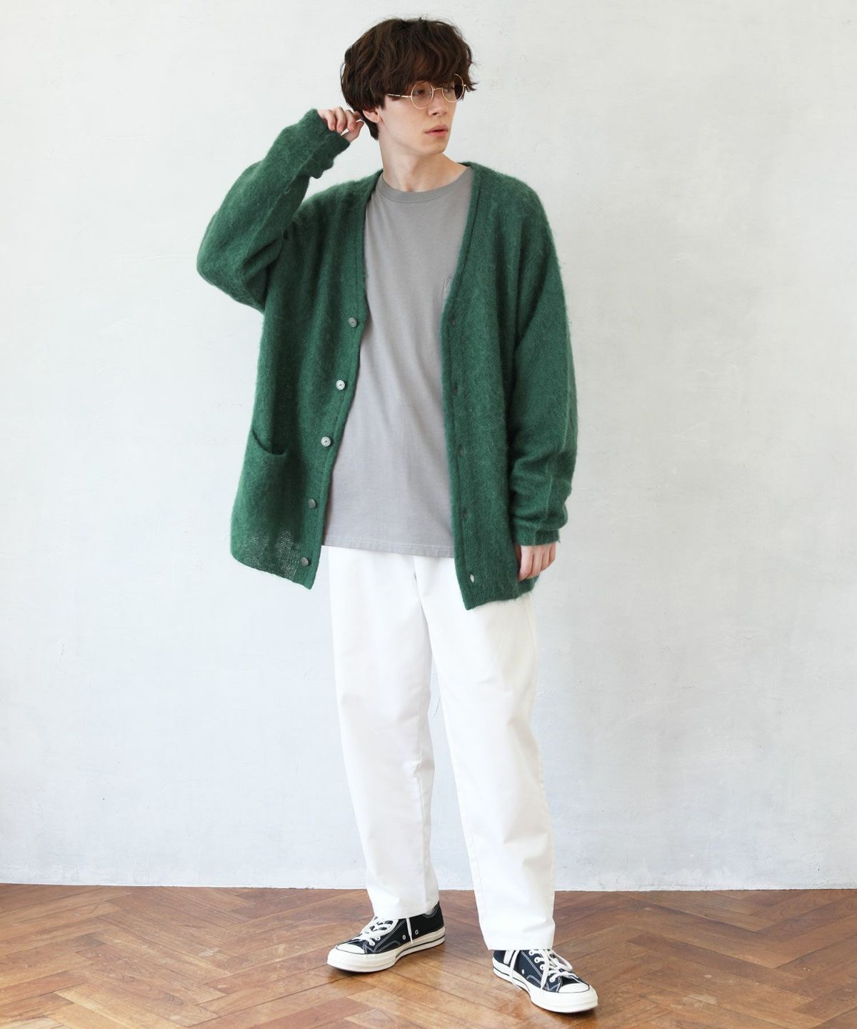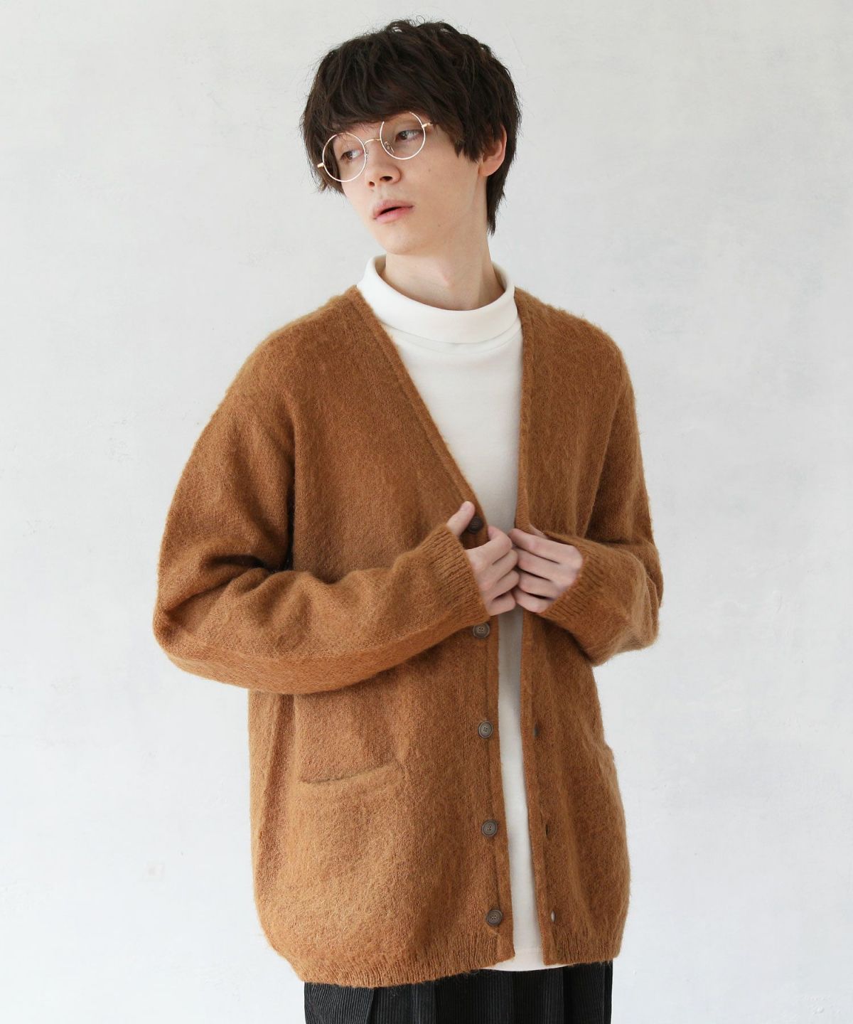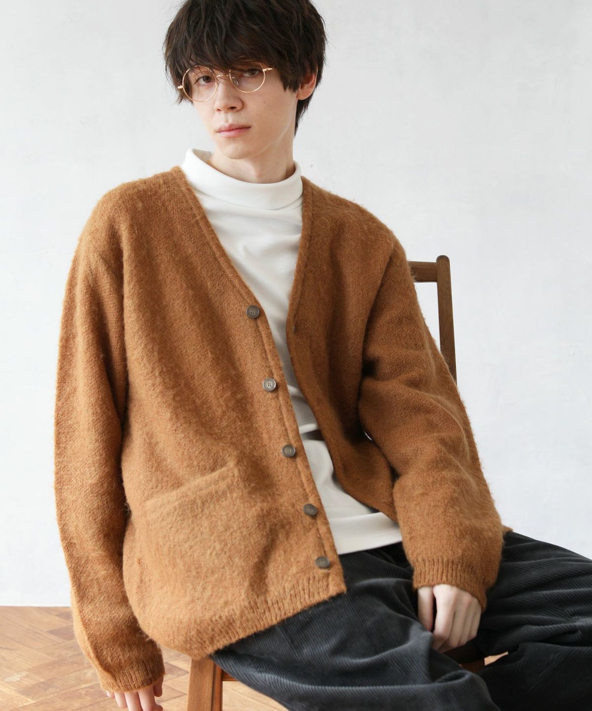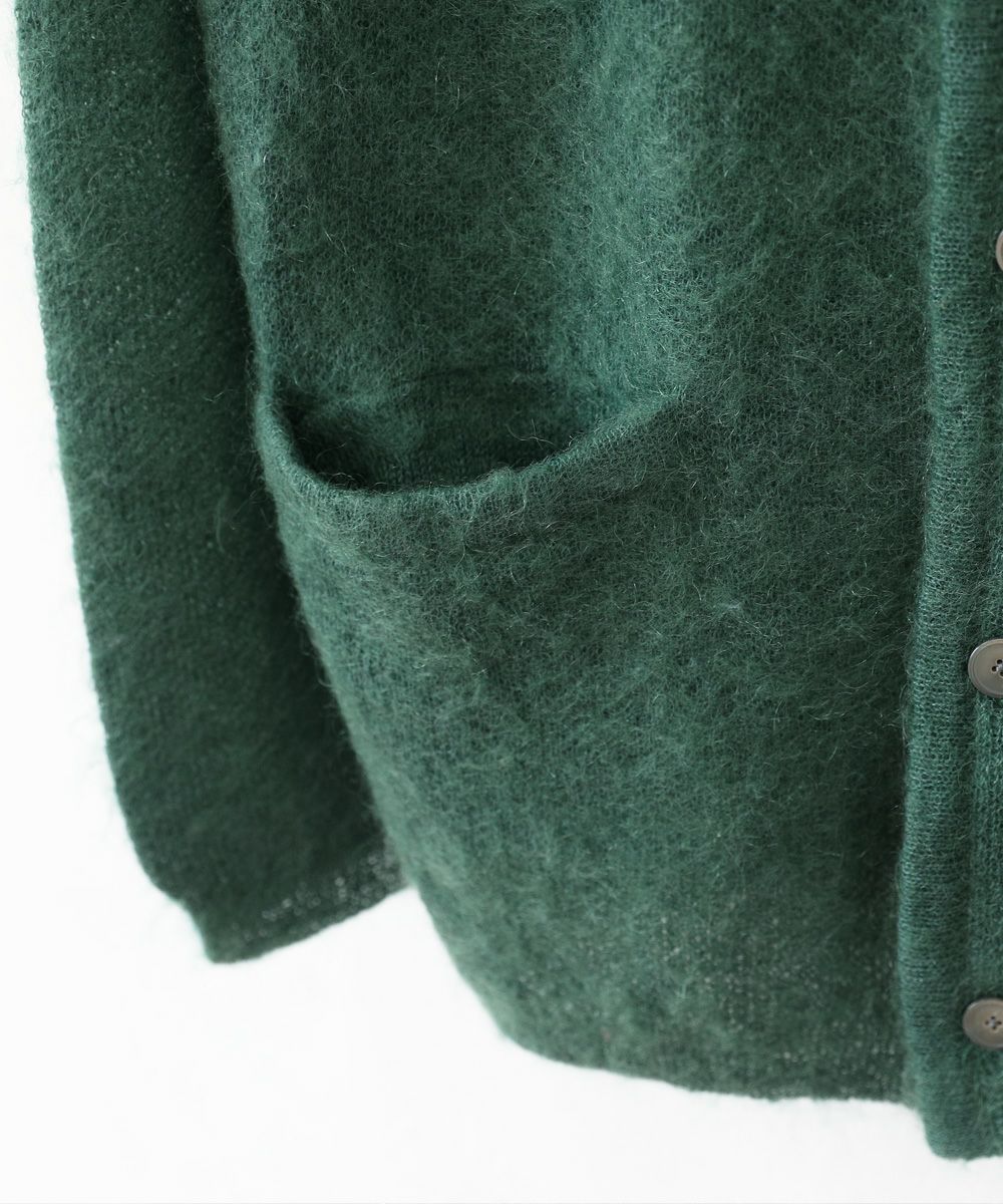 上質で柔らかなモヘアをシャギー起毛したカーディガンです。ゆとりのあるサイジングと、ふっくらとしたシルエットが特徴的。プレーンで日常のスタイリングにも取り入れやすく、着回し力の高いアイテムです。