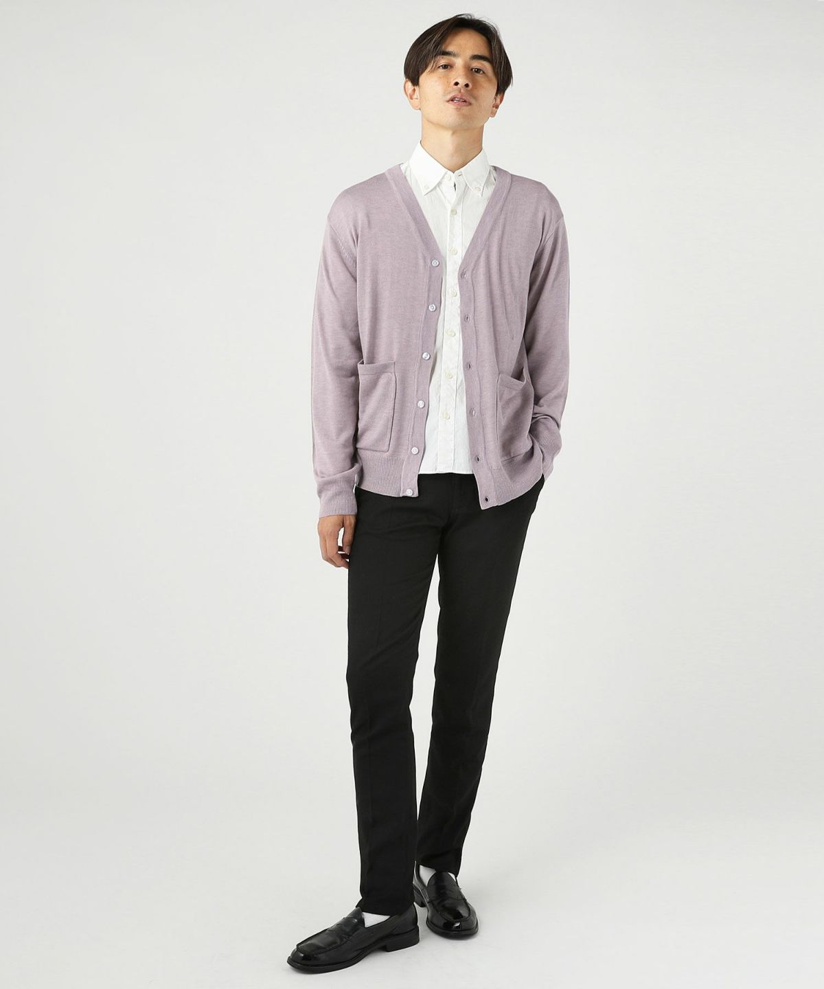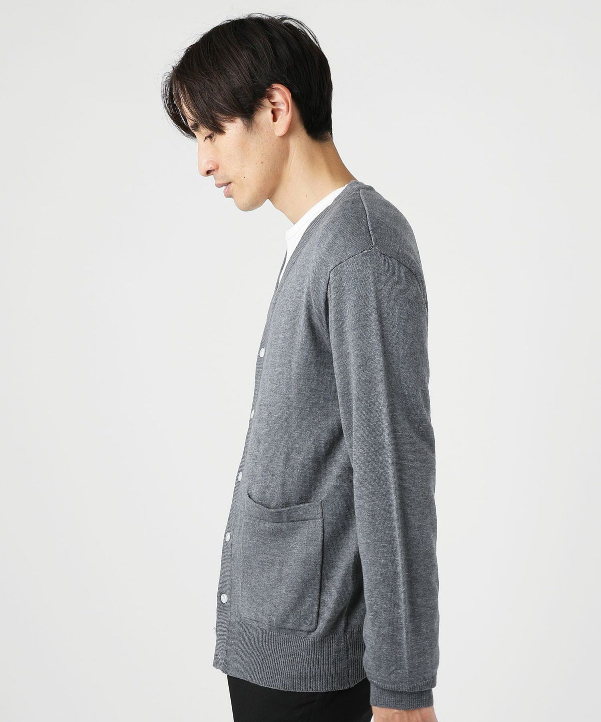 12Gという細かな編地で作られたカーディガン。すっきりとしたVネックでカットソーやシャツなどと合わせやすく、サッと気軽に羽織れる一着に仕上げました。