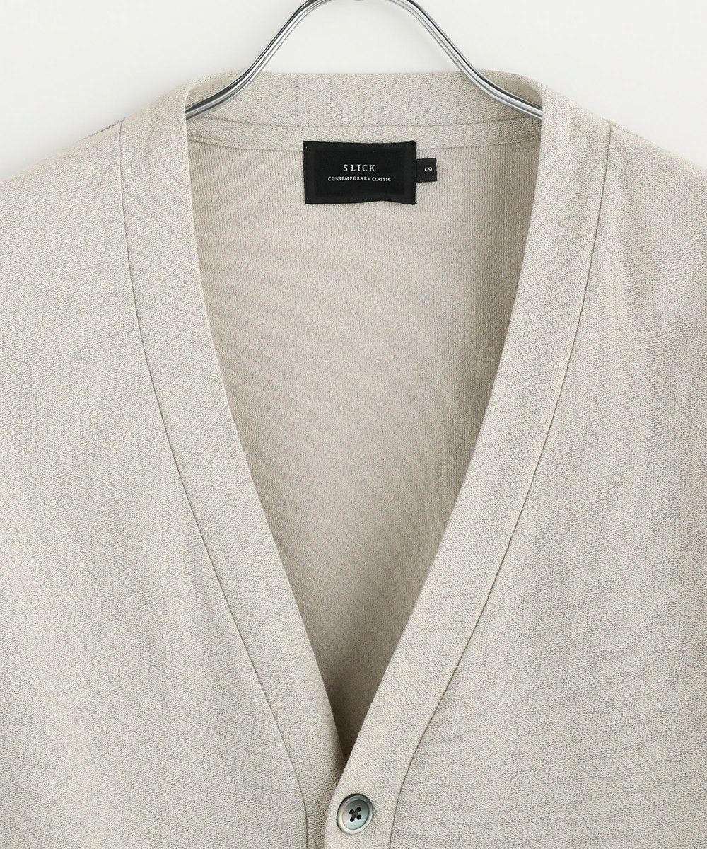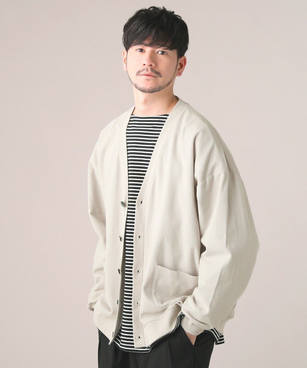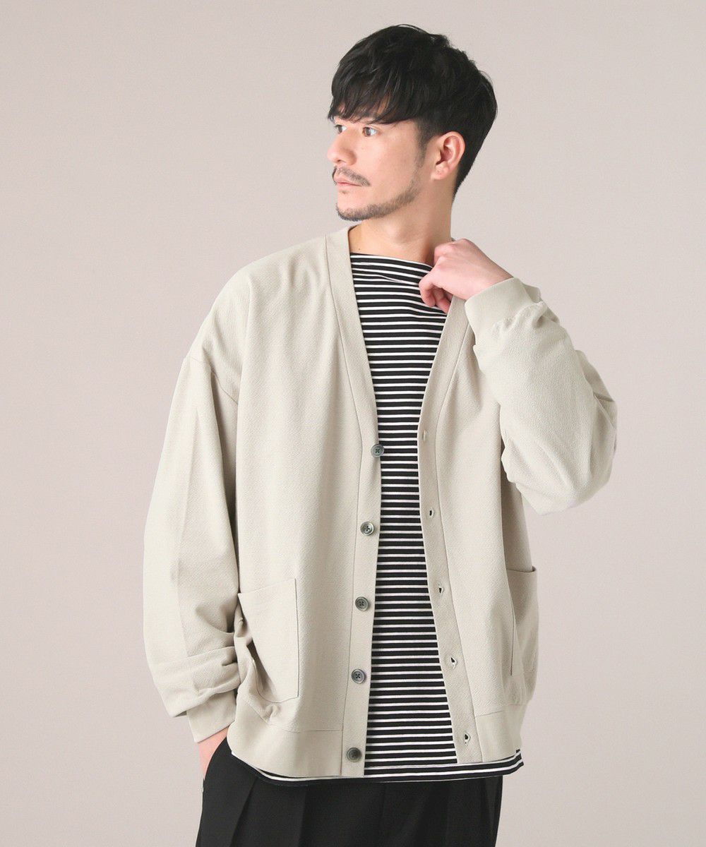 MVS(ムラタヴォルテックススピナー)と呼ばれる特殊な構造をした糸で編まれたアムンゼン生地を採用。リネンのような風合いとドライタッチな肌触りが、シンプルながらも洗練された雰囲気を醸し出すカーディガンです。飽きの来ないデザインで、様々なスタイリングで活躍する一枚に仕上がりました。