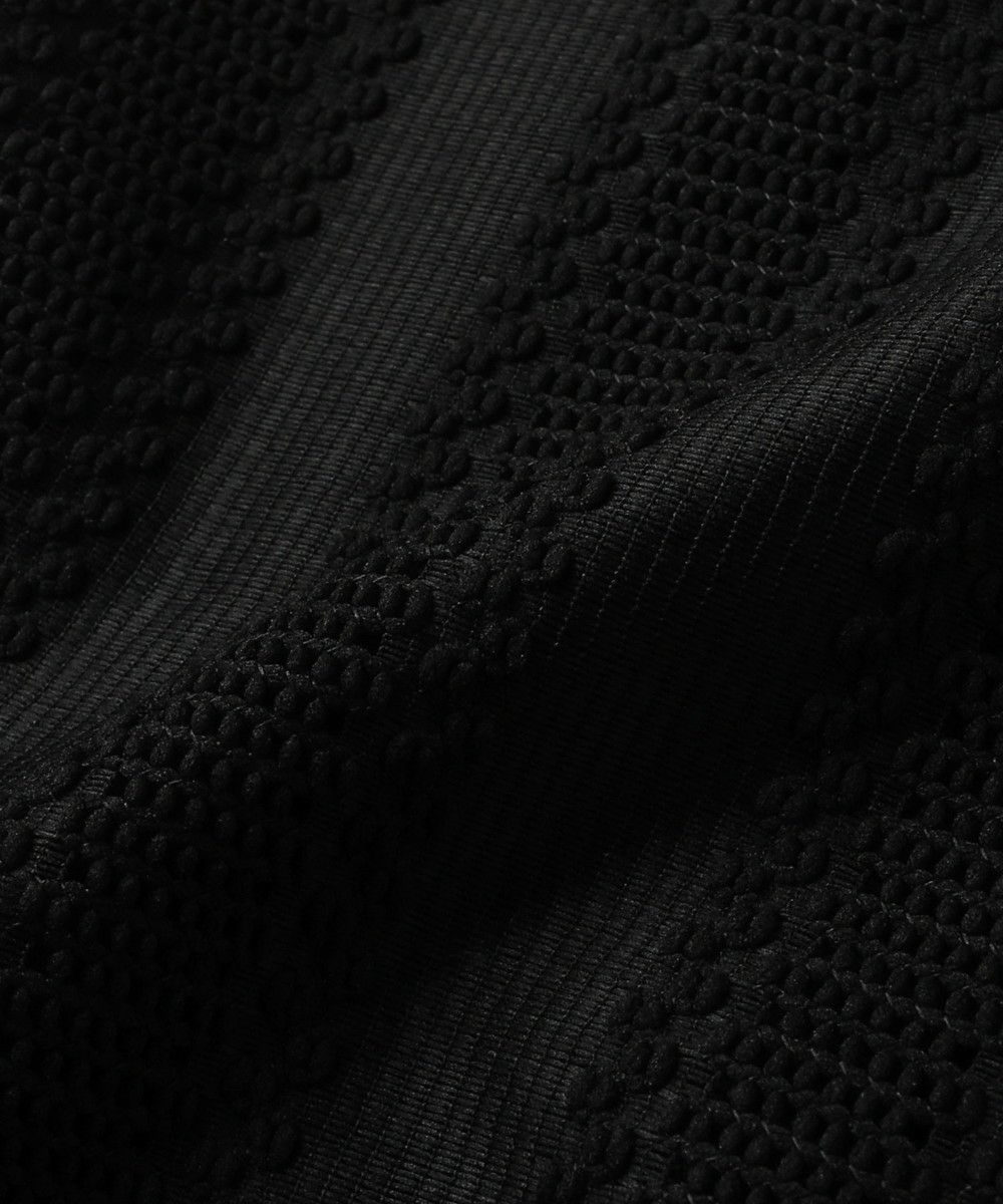 生地はラッセルレースになっております。縞模様のように見える縦方向のレースで、無地ながらも華やかな印象を与えます。