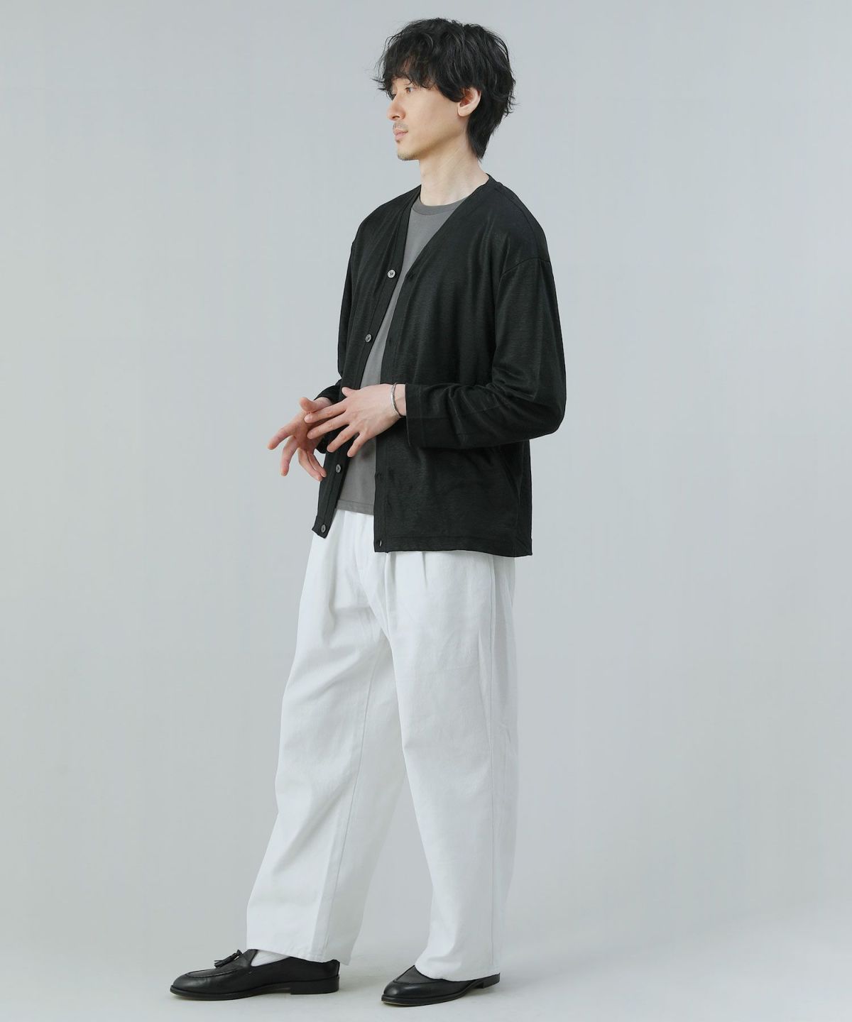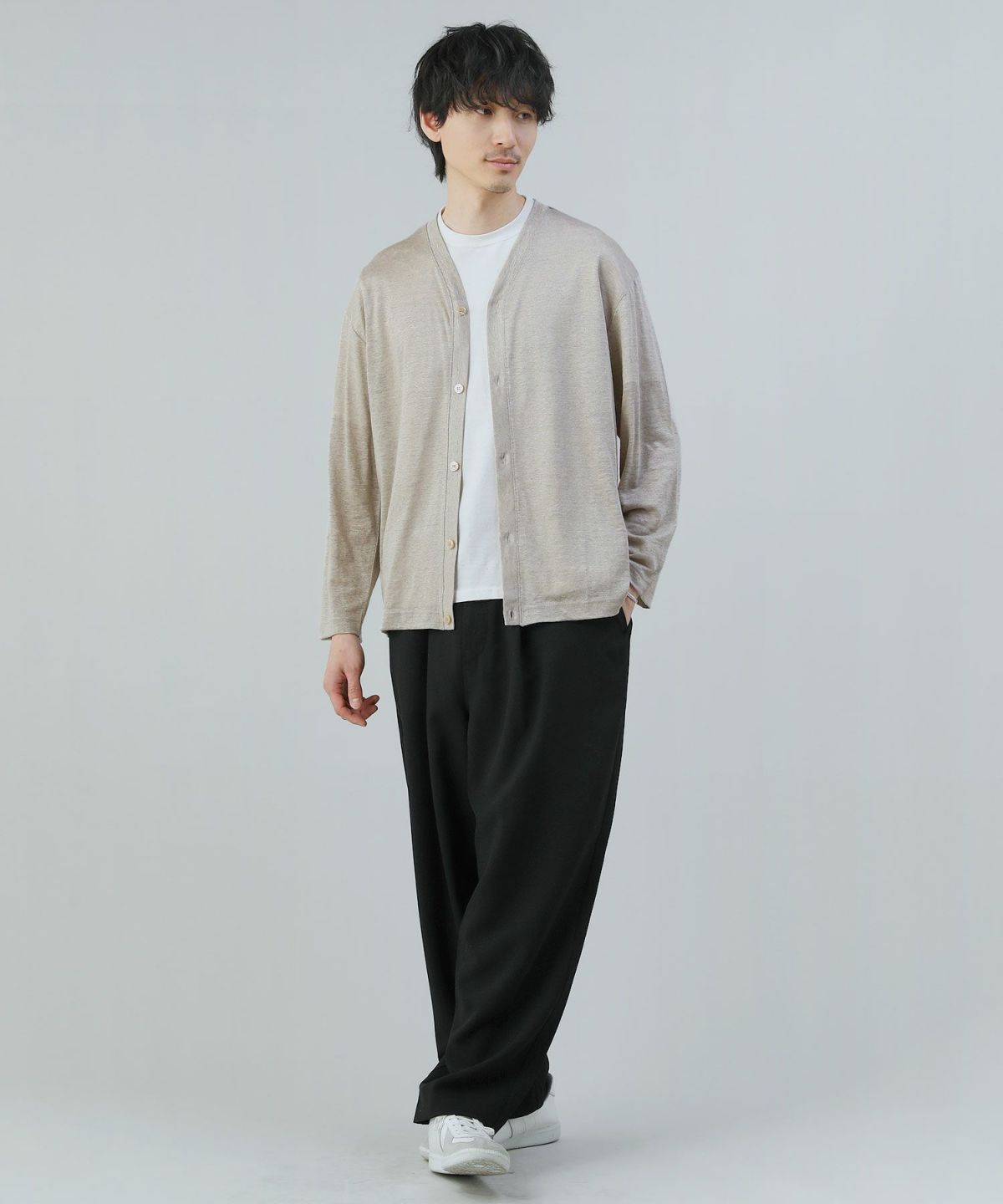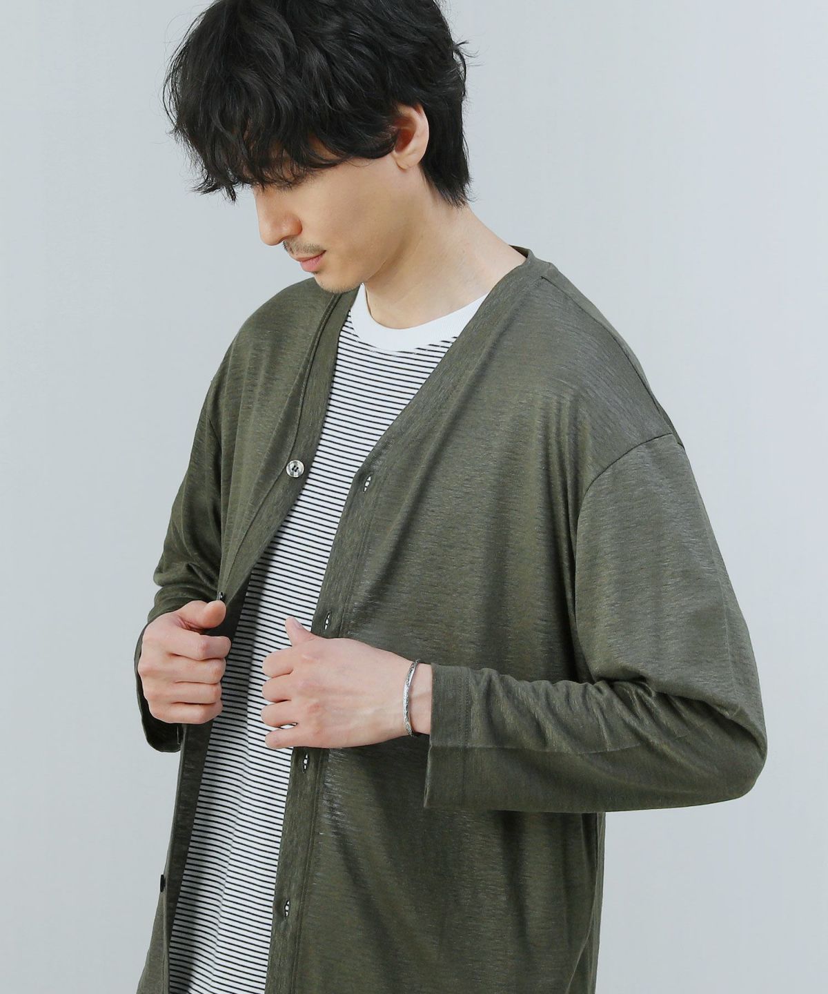 涼しく快適な着用感のリネン100%国産カーディガンです。