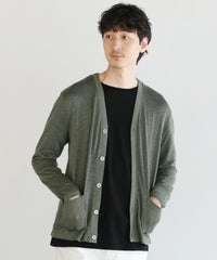 ふわっと軽やかなスラブニットを使用した春夏専用カーディガンです。最大の特長は、風通しの良い軽量な透け素材ニットを用いていること。ふんわりとしたエアリーな生地感で、さらっと羽織るだけで見た目にも涼し気なカーディガンコーデが完成します。形はとてもベーシックになっているのでタンクトップやシャツなど幅広いアイテムと相性が良く、着回し力抜群。屋外での日除けや冷房が効きすぎている屋内での体温調節にも重宝する使い勝手の良い一着です。