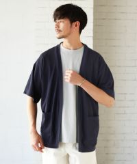 針抜きのリブ編みが特徴的な半袖カーディガンです。