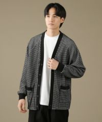 12ゲージ麻タッチ鹿の子ボタンレスカーディガン