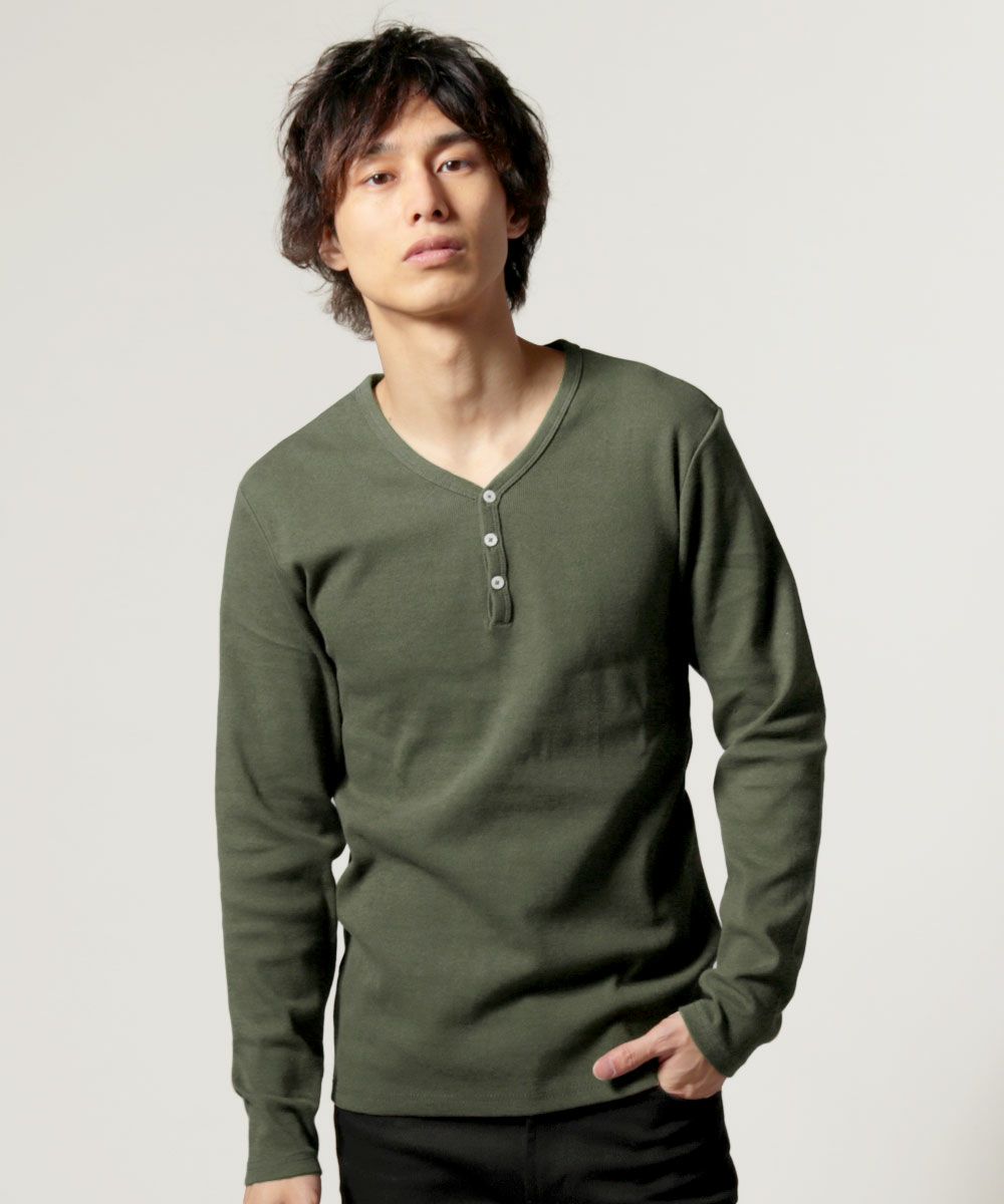 ジャストフィットTCワッフルヘンリーネック長袖カットソー 3,960円(税込) |