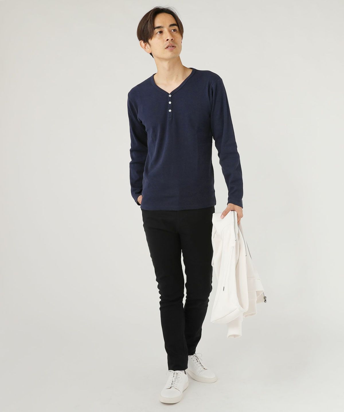 スパンフライス長袖ヘンリーネックカットソー 3,960円(税込) |