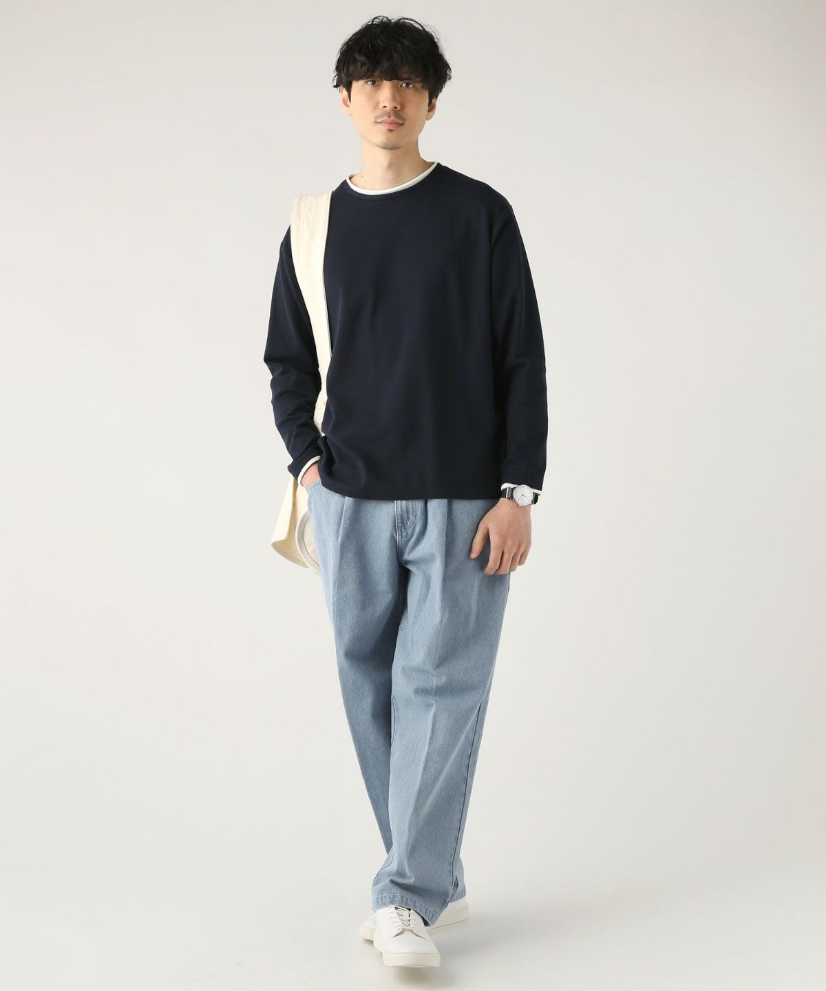 デニムにタックインしたカジュアルな着こなしだけでなく、上品なセットアップのインナーとしても相性抜群。
