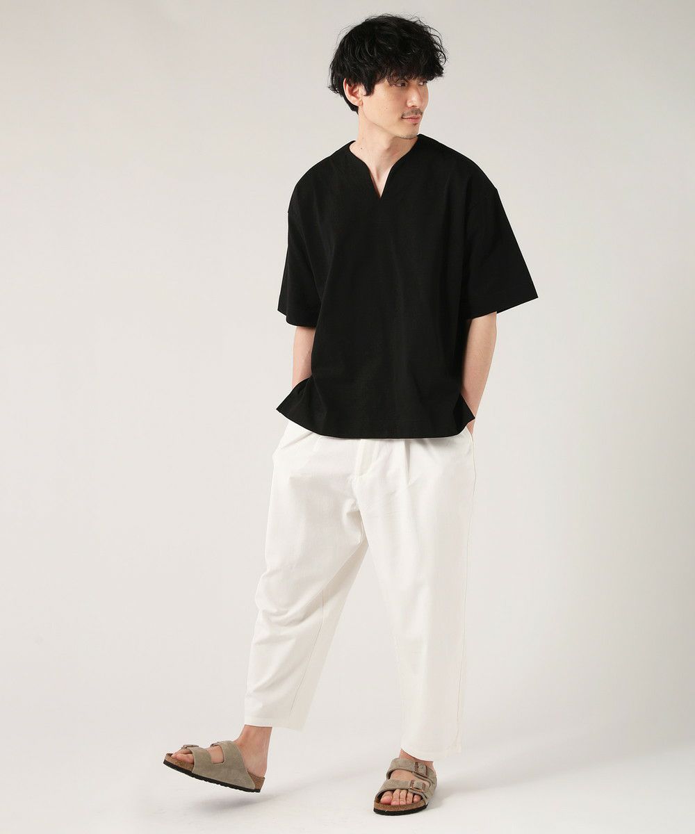 コンチョボタンヘンリーハーフスリーブテーパードTシャツ