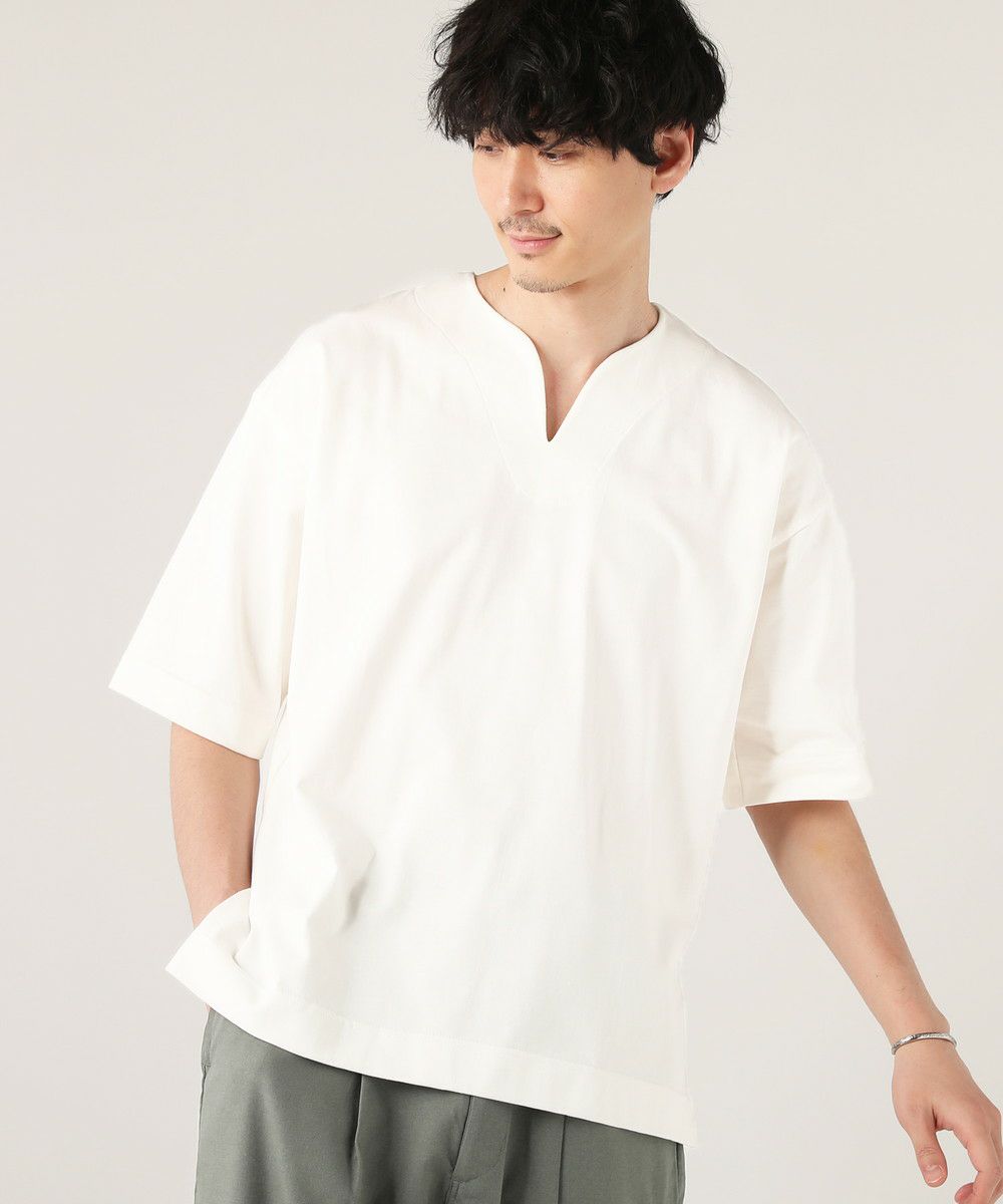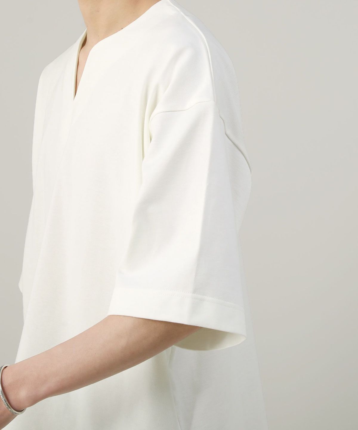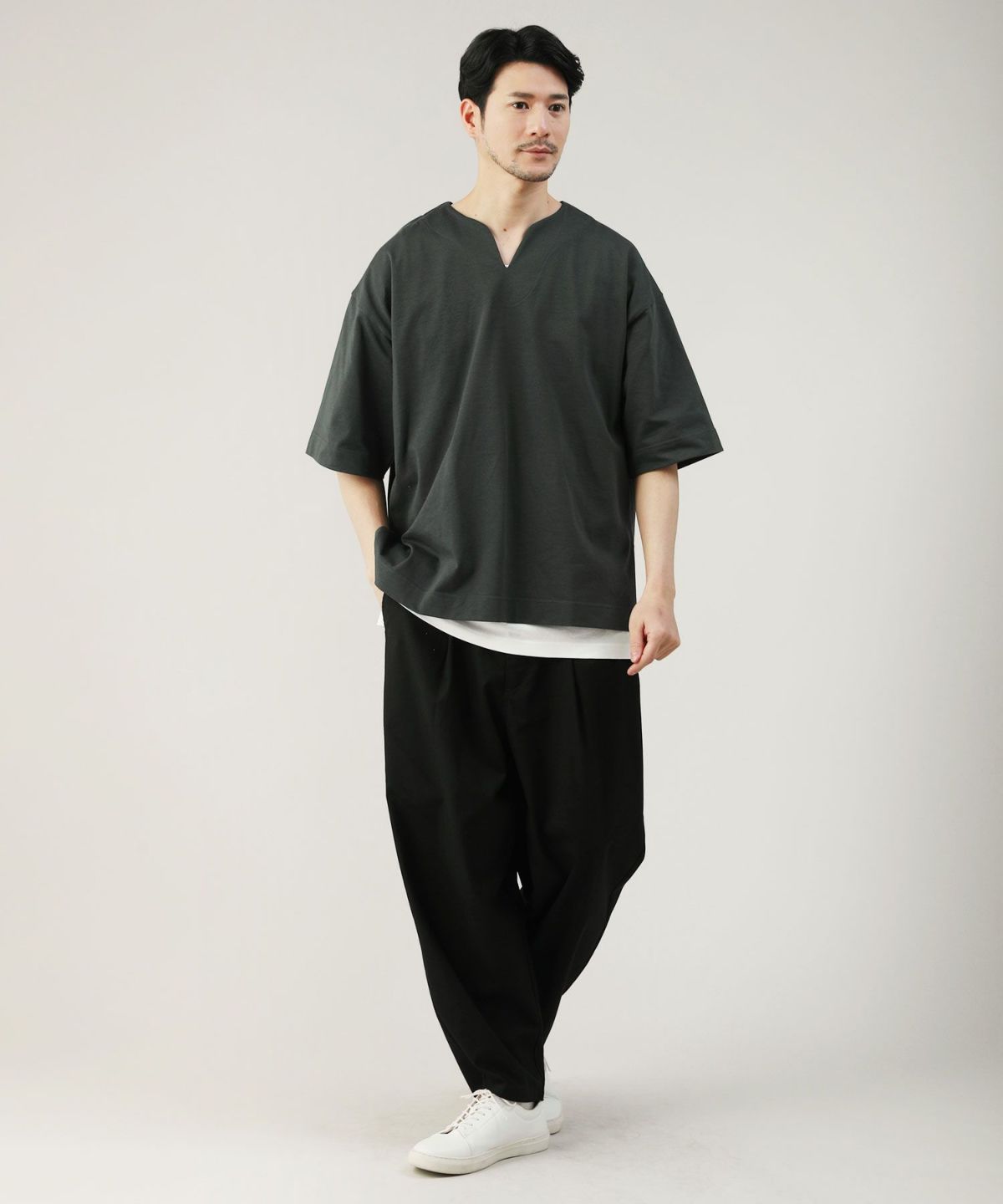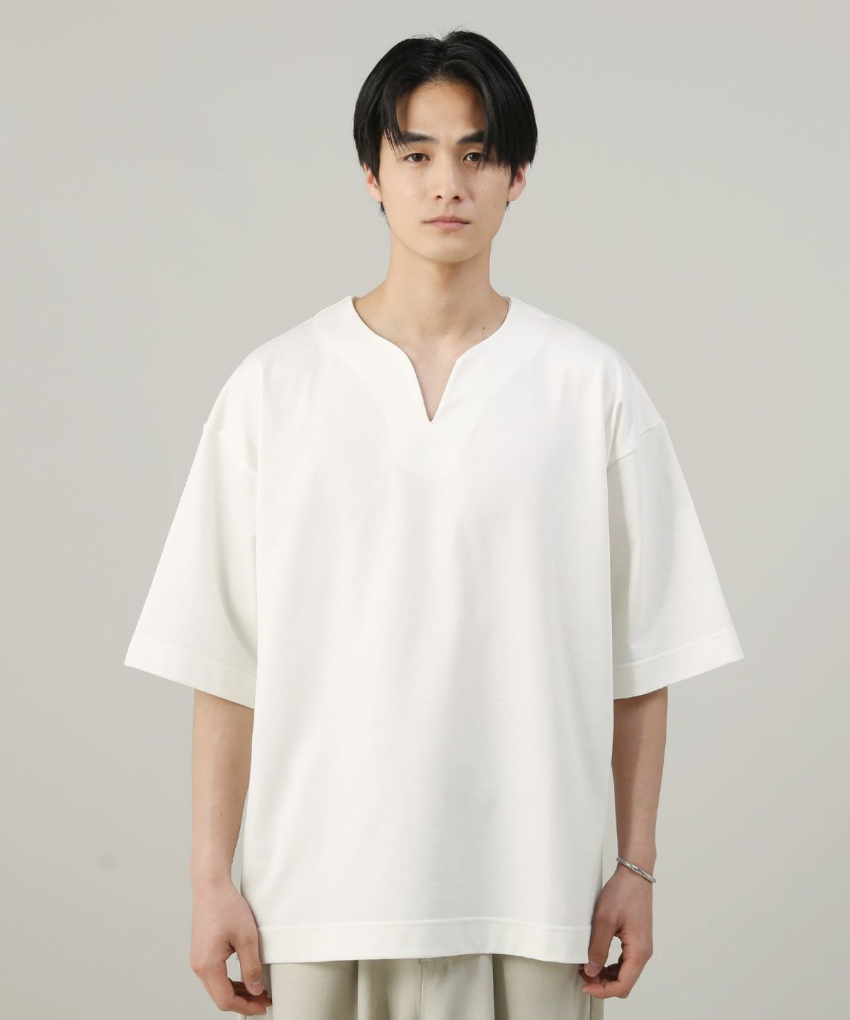 コーディネートに抜け感をプラスするオーバーサイズキーネックTシャツ。