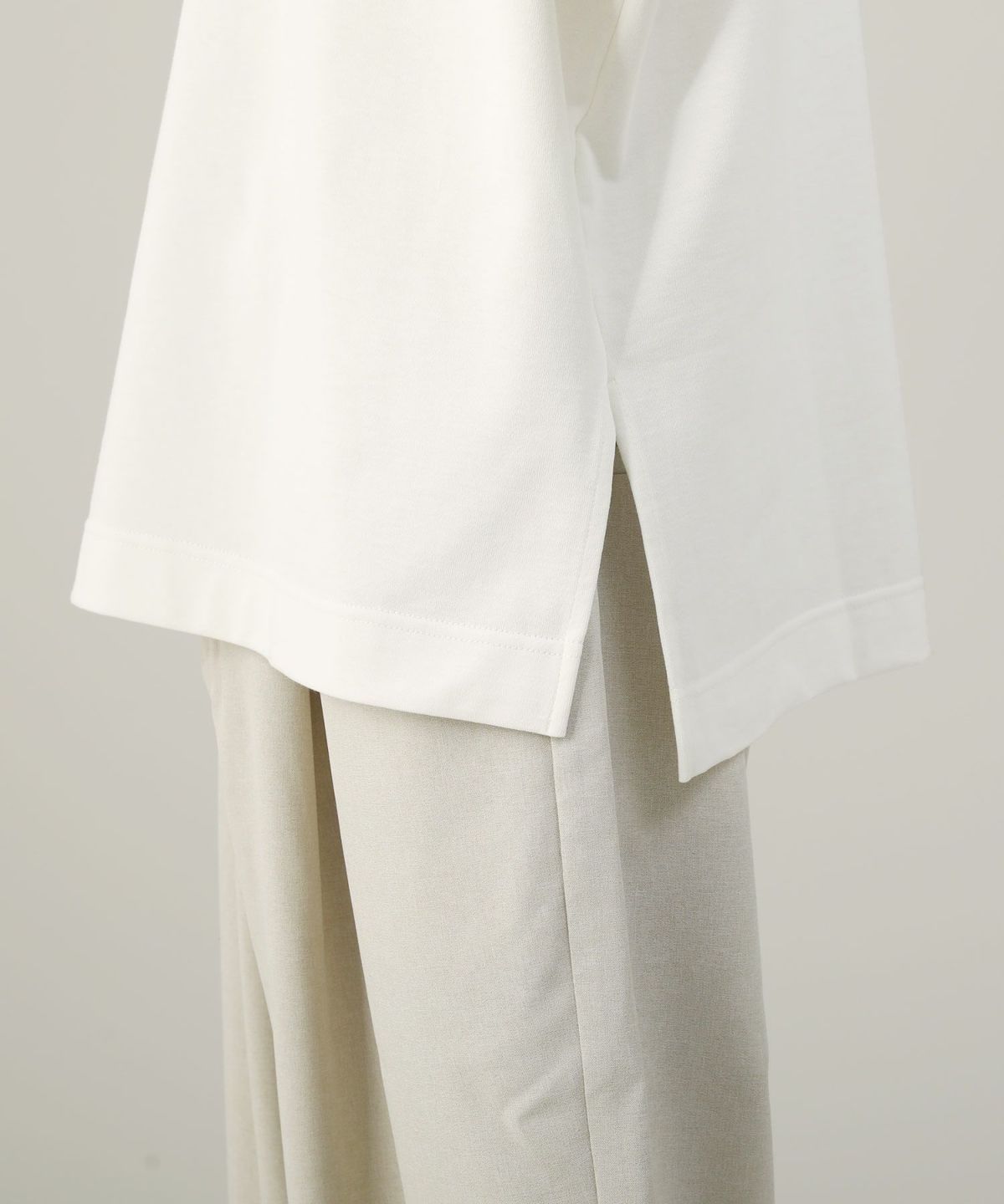 お洗濯による型崩れもおこしにくいので、ご自宅でのケアが簡単なのも嬉しいポイント。綿100%でありながらドライタッチな着心地で肌にまとわりつきにくく、快適な着心地をキープしてくれるアイテムです。