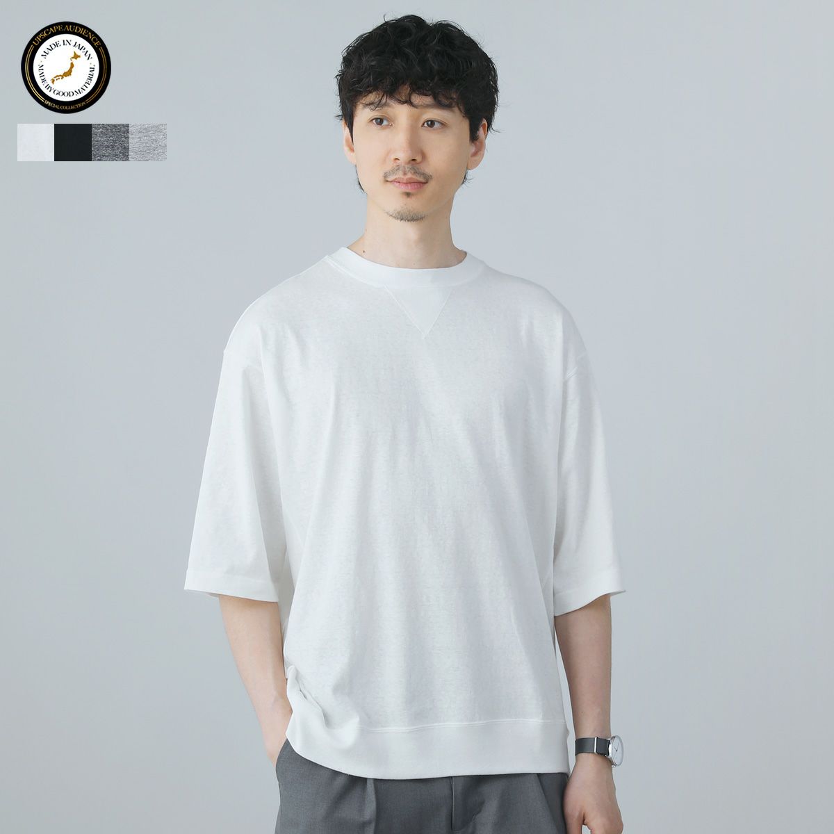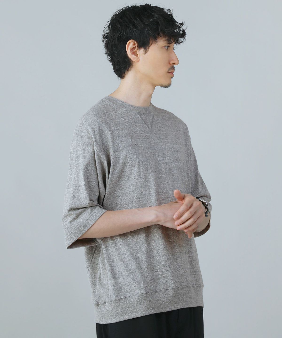 日本製ラフィー天竺(5.5オンス)ガゼットクルーネック ハーフスリーブスウェットライクTシャツ