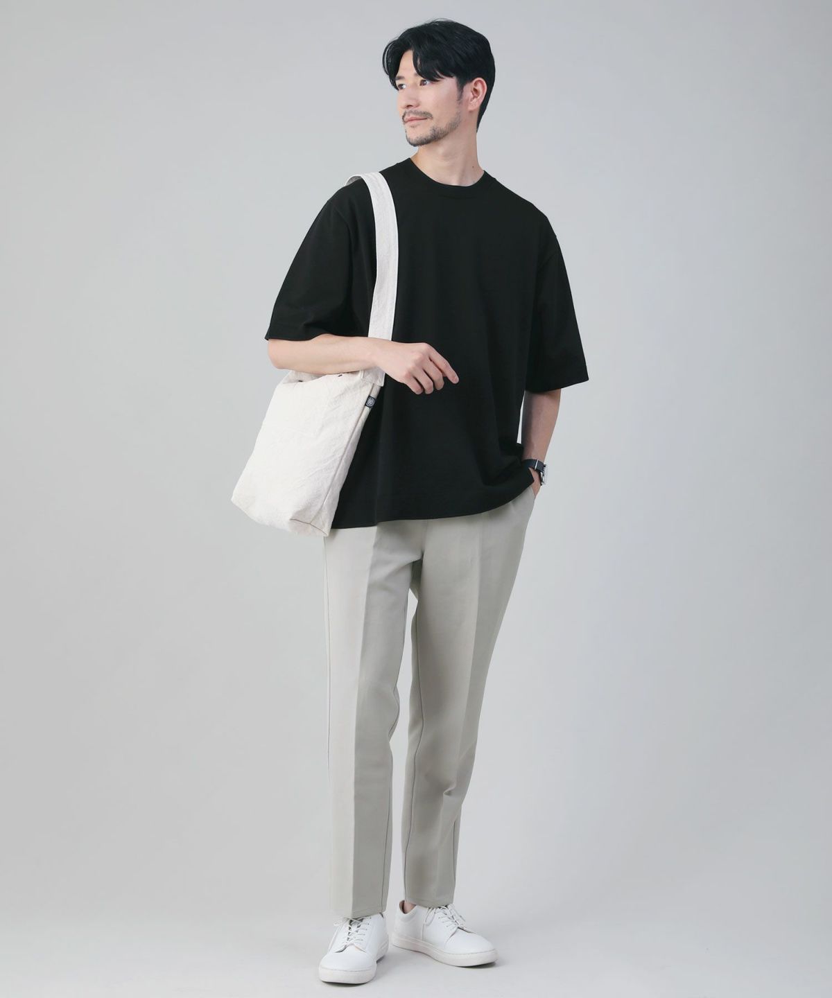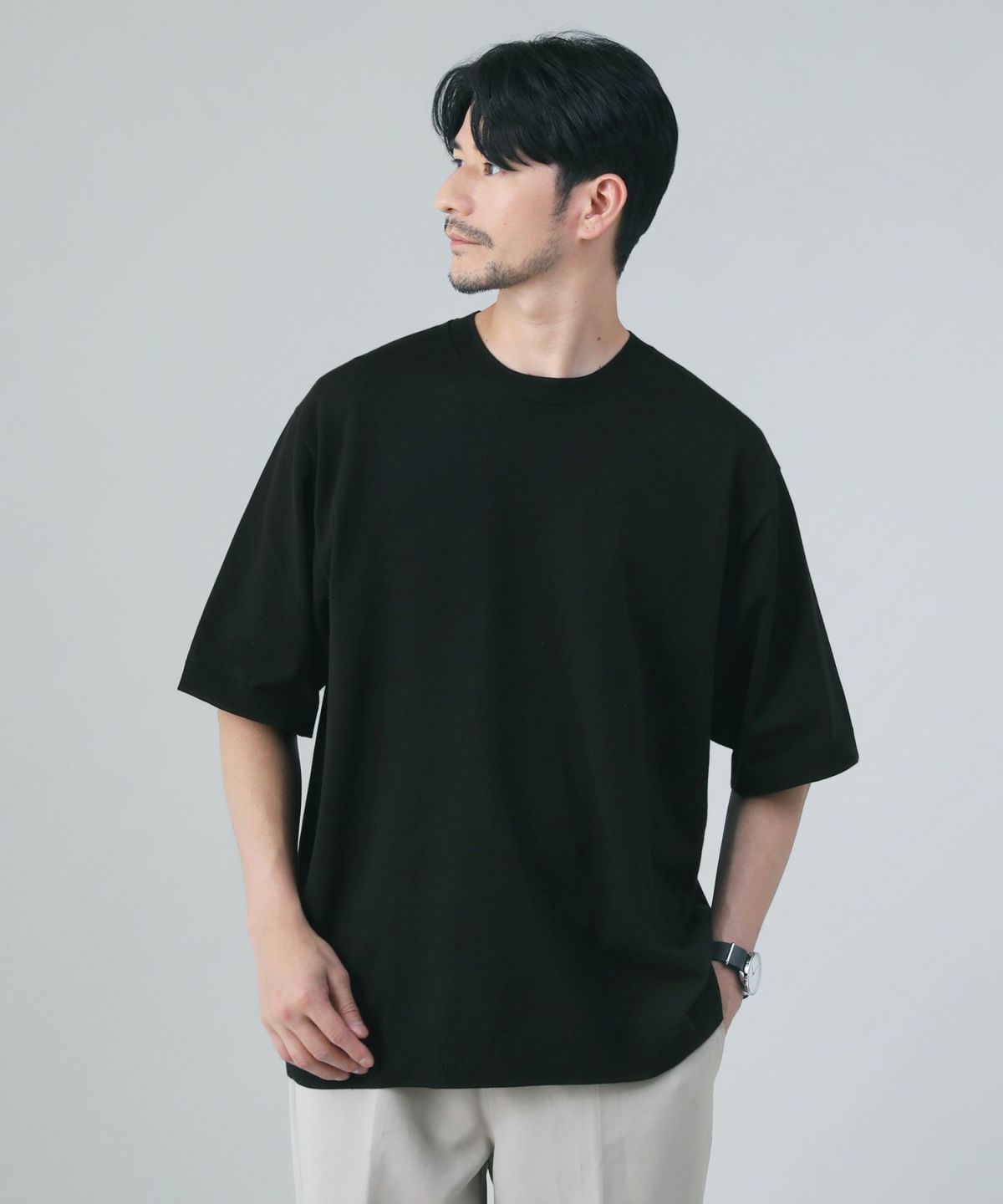 肌なじみの良い柔らかなタッチと、爽やかな着心地の良さが特長のアイテム。ドロップショルダーがこなれ感を演出し、ゆとりのあるサイズ感で着心地も抜群です。首元、袖、裾はリブ仕様になっており、体に優しくフィットします。