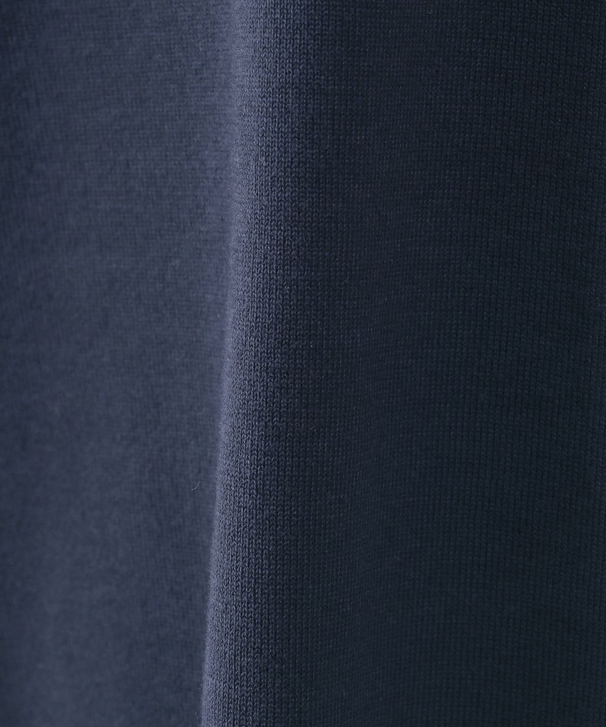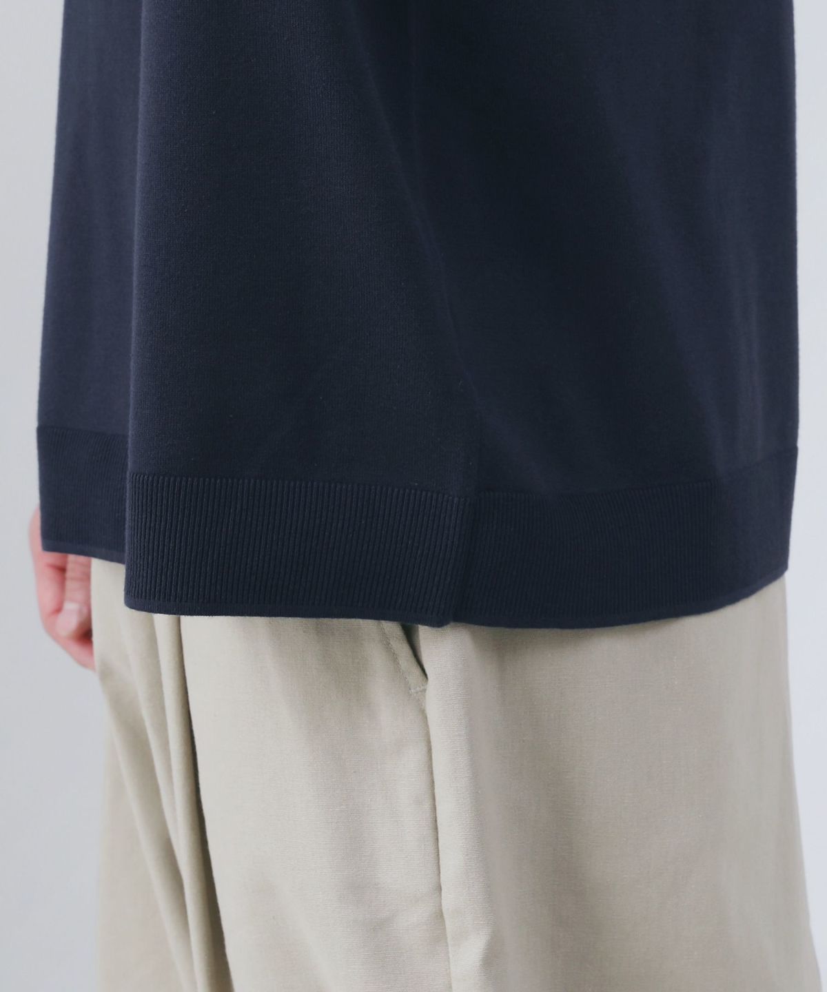 生地はコットン×ポリエステルのニット素材を使用。コットン由来の吸湿・発散に加え、通気性にも優れており、夏でも抜群の着心地をキープできます。さらにポリエステルを混紡することで、シワや型崩れがしにくいためご自宅で手洗い洗濯も可能。さっと袖を通せて、デイリーにご着用いただける便利なアイテムです。