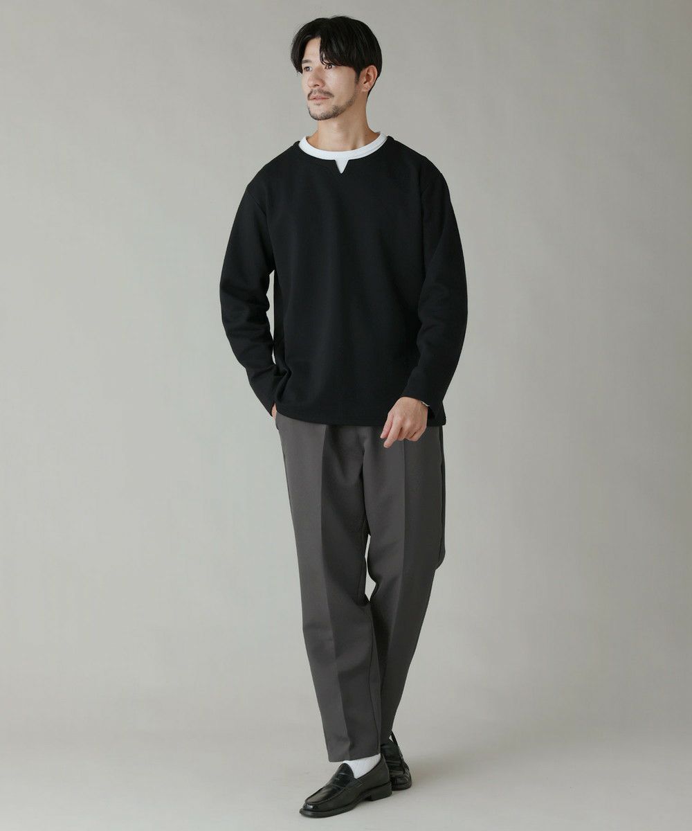 リラクシングシルエットセンタープレススラックスパンツ ポリストレッチ生地/テックリネン生地