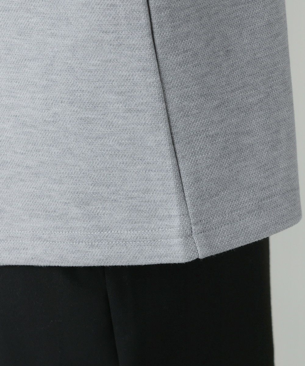 ネック部分にだけ白い別布を縫い付け、重ね着をしているように見せるフェイクレイヤードデザインを取り入れました。外側のネックにはリラックス感を演出するトレンドのネックデザイン『スキッパー型』を採用し、旬の着こなしが楽しめる一着に仕上げています。