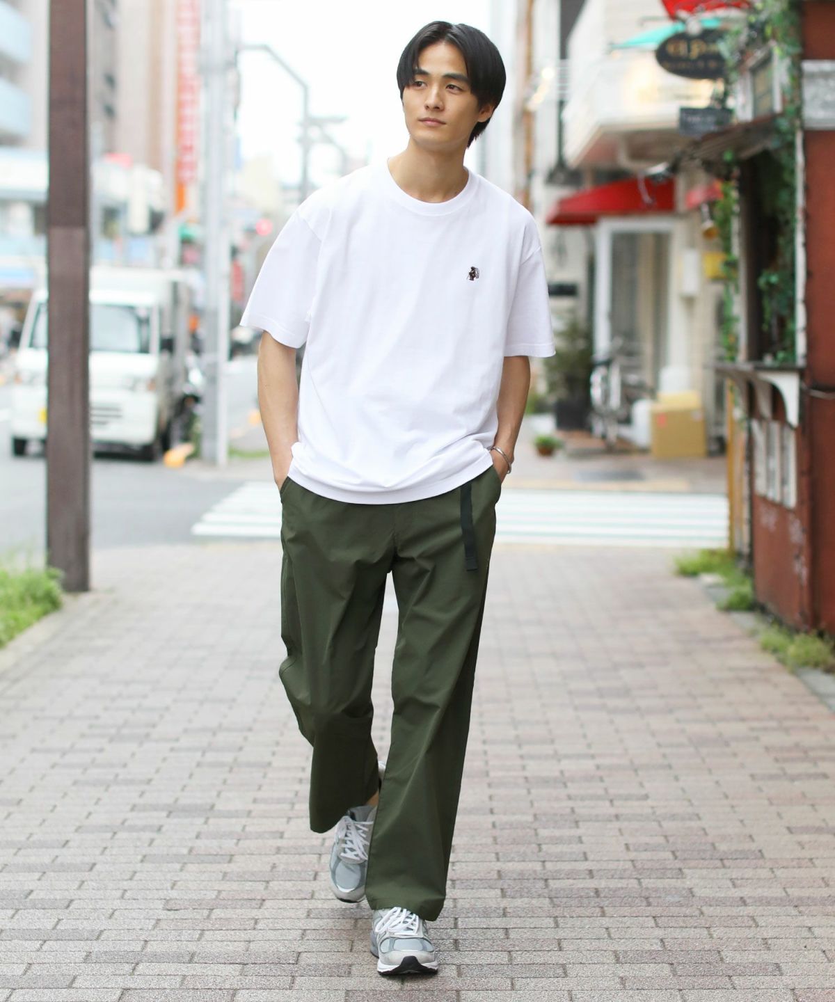 胸元にワンポイントあしらっただけの無地Tシャツだからこそ、その着こなし方は自由自在で様々なテイストのアイテムと相性抜群。男らしさを活かしたヴィンテージデニムにカーゴパンツ、上品なワイドスラックスだけでなく、夏向けのハーフパンツやサンダルといったアウトドアスタイルにもおすすめ。一枚使いでもこなれた雰囲気のスタイルに仕上がりやすいデザインです。
